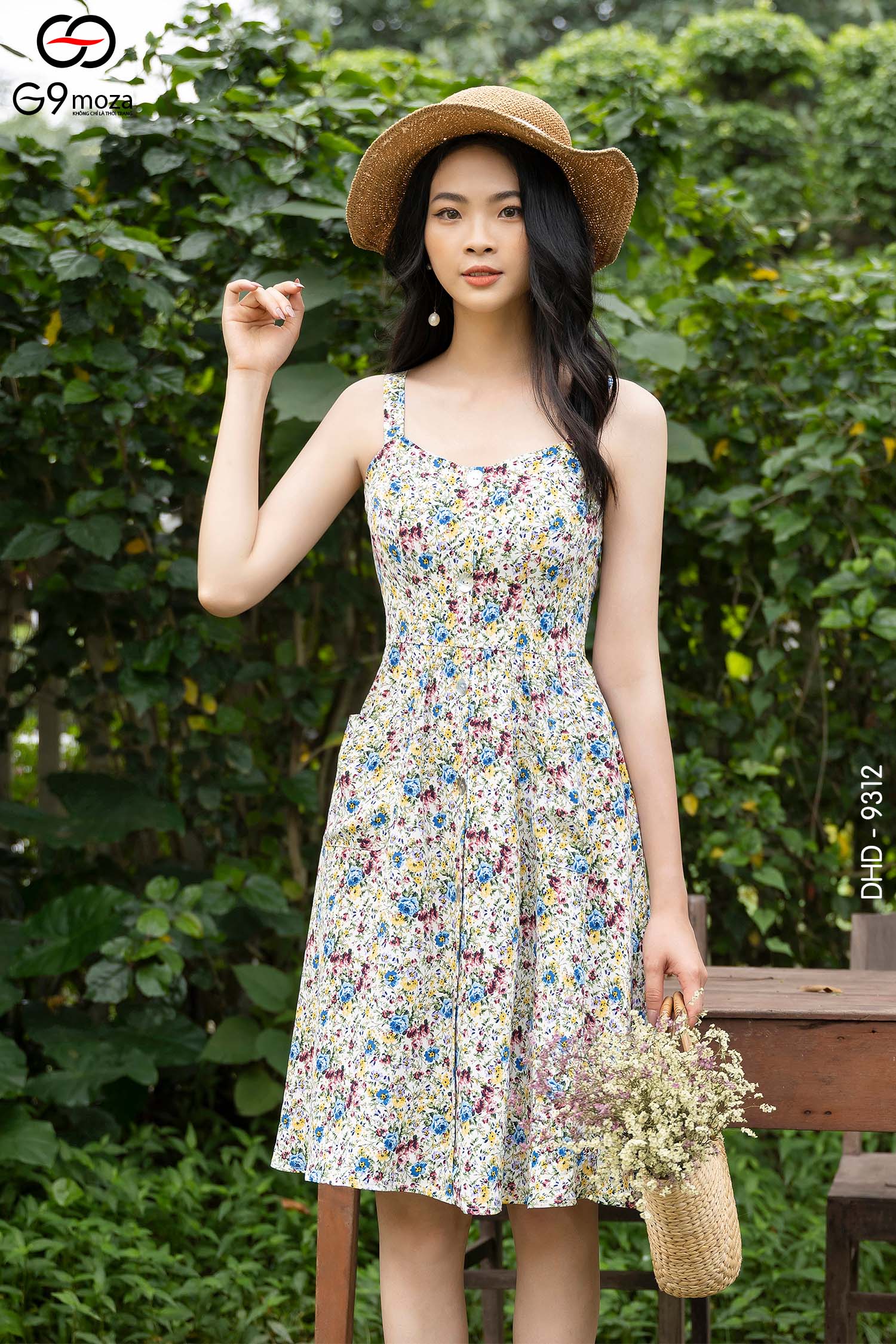 Đầm hai dây là một trong những item kinh điển khi thường xuyên được xuất hiện trong những chuyến đi mùa hè. Một chiếc đầm hoa nhí mềm mại cùng chiếc mũ cói xinh xinh là đã đủ đẹp.