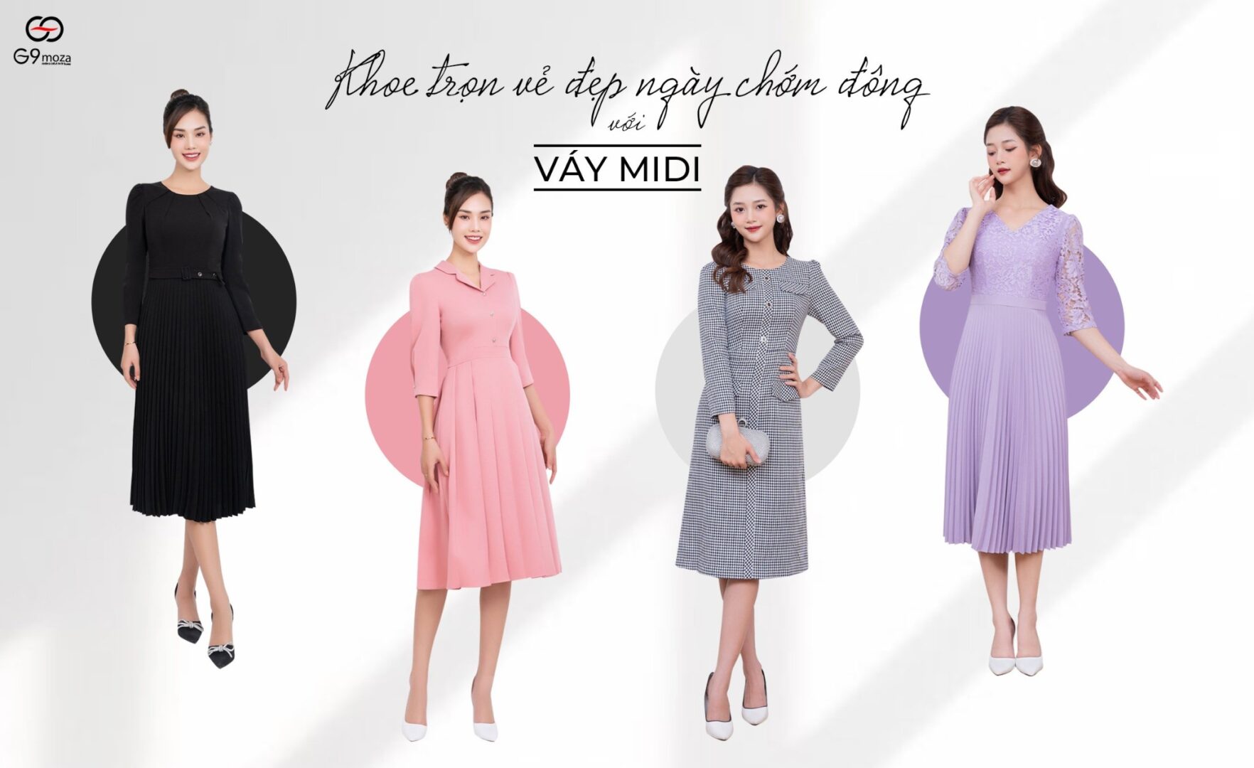 Với các cô gái có vóc dáng hơi gầy gò, váy midi tạo phom phồng nhẹ trên các tone màu đen sẽ giúp phát huy hiệu quả về hình ảnh. Những đường cắt bo tròn “làm mềm” vóc dáng mảnh khảnh để tôn nét nữ tính tự nhiên, đường xếp ly thân váy được tính toán khéo giúp nàng vừa quyến rũ vừa lịch sự, trang trọng.