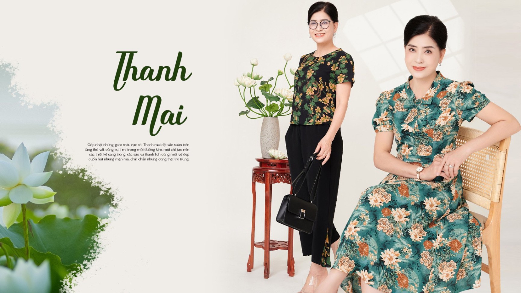Góp nhặt những gam màu rực rỡ, Thanh mai dệt sắc xuân trên từng thớ vải, cùng sự tỉ mỉ trong mỗi đường kim, mũi chỉ, tạo nên các thiết kế sang trọng, sắc sảo và thanh lịch cùng một vẻ đẹp cuốn hút nhưng mặn mà, chín chắn nhưng cũng thật trẻ trung.