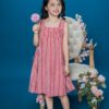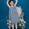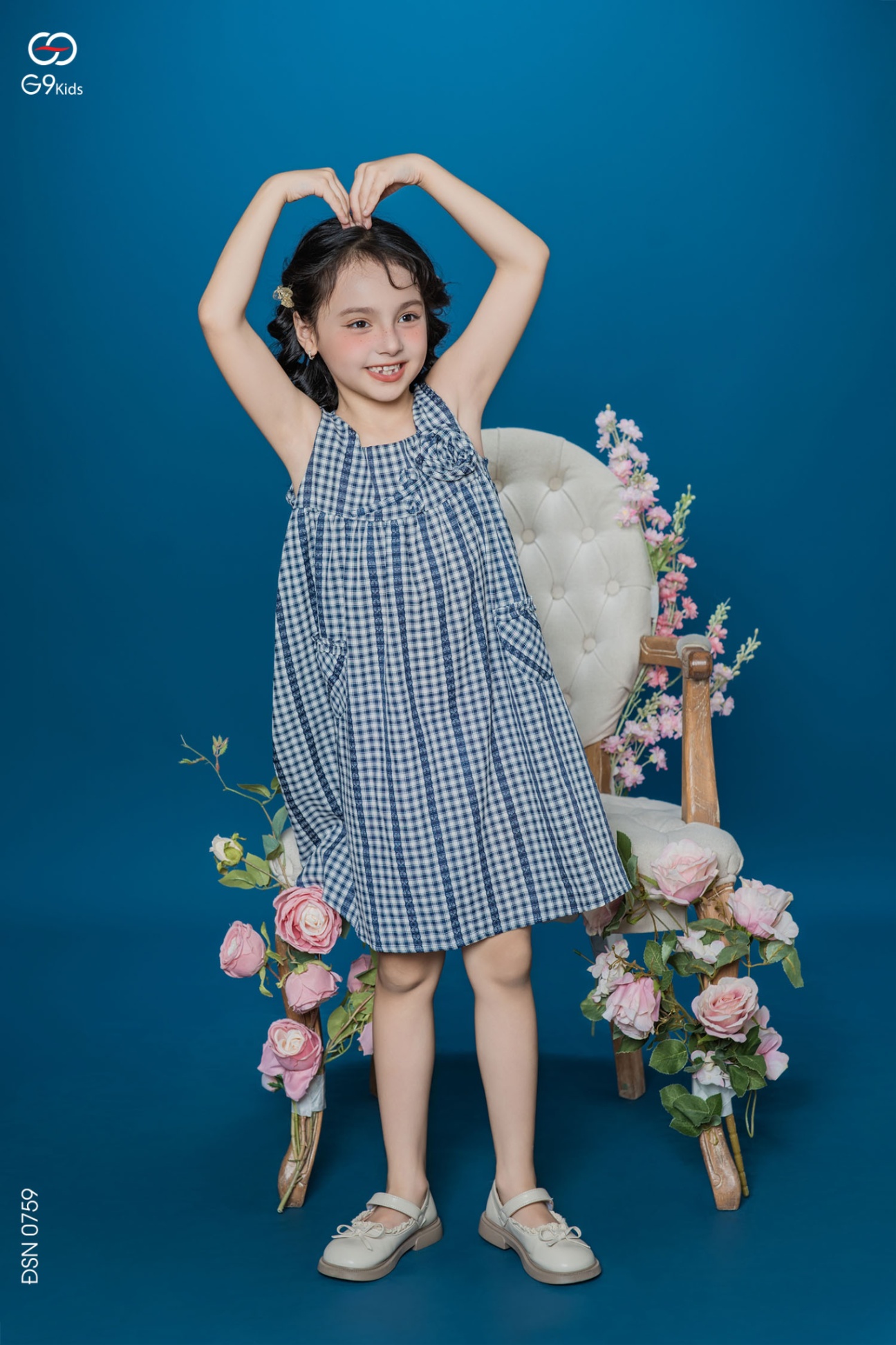 Váy sát nách chất liệu thô kẻ phối hoa 3D cho bé gái 25S57BĐSN0759-2