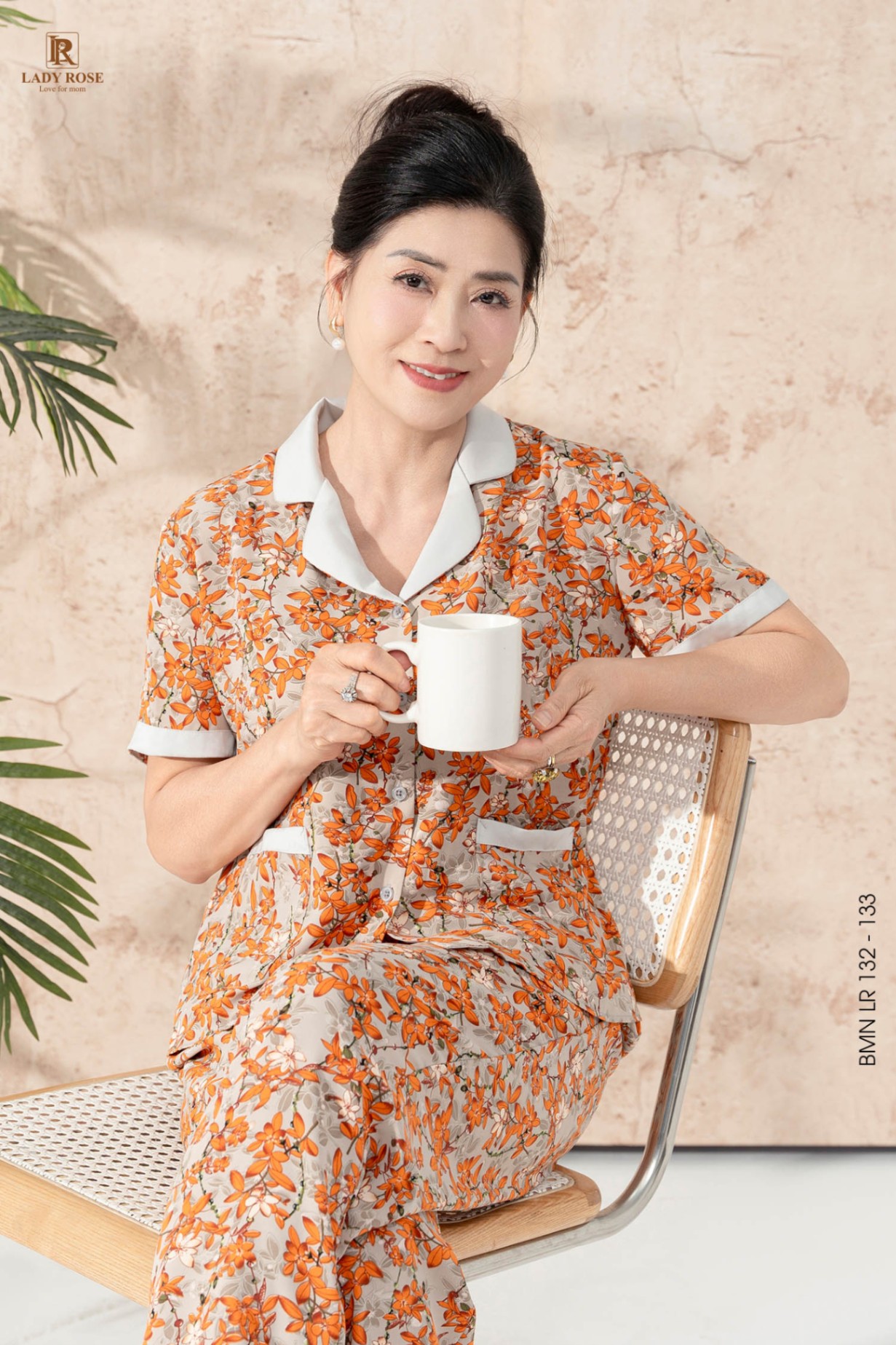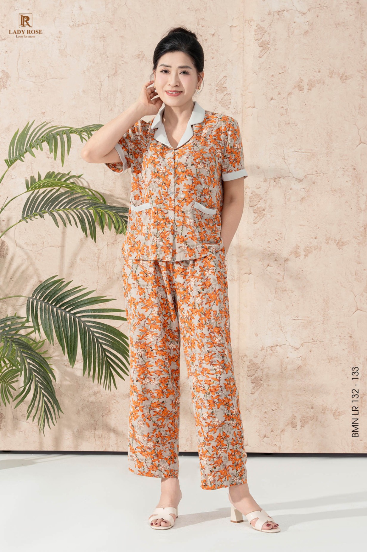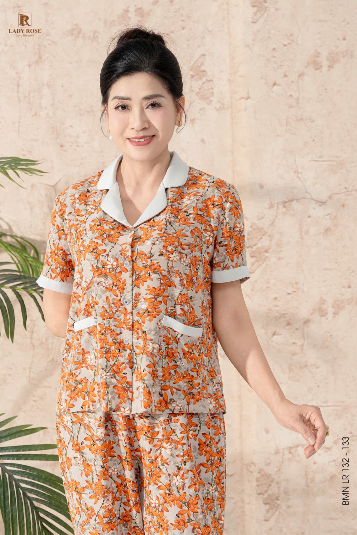 Bộ mặc nhà áo tay cộc quần dài chất liệu lụa hàn 25S17BMNLR132+133-2