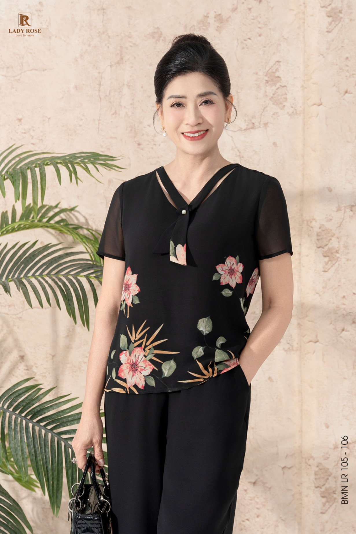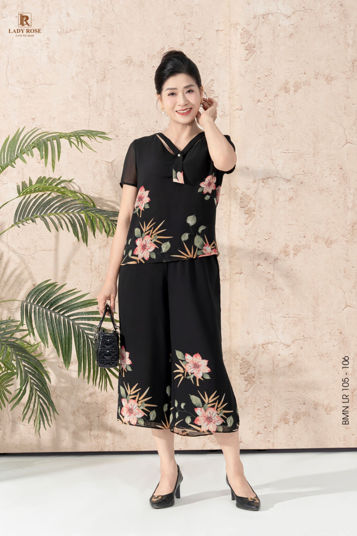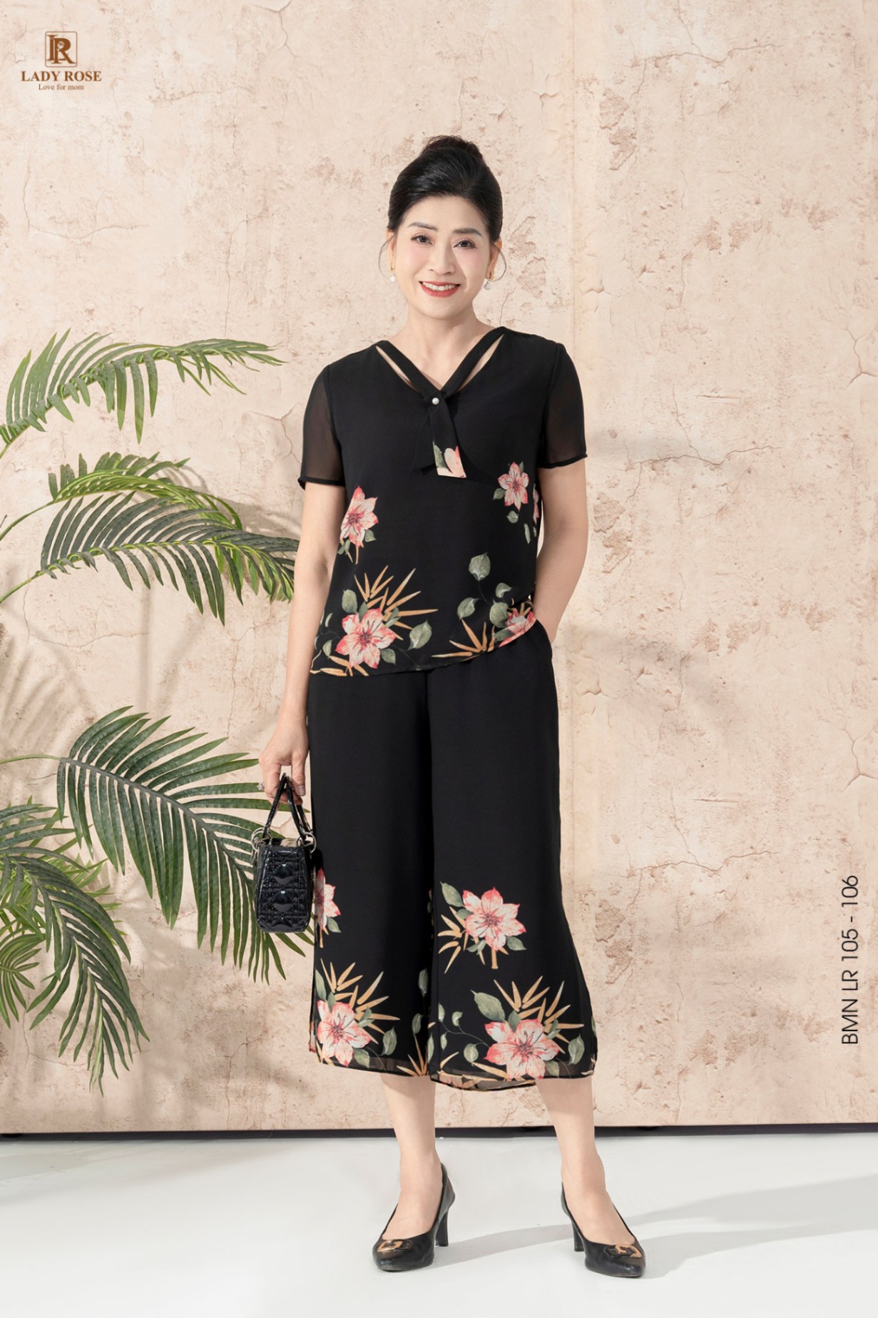 Bộ mặc nhà áo tay ngắn quần lửng ống suông chất liệu chiffon 25S16BMNLR105+106-3
