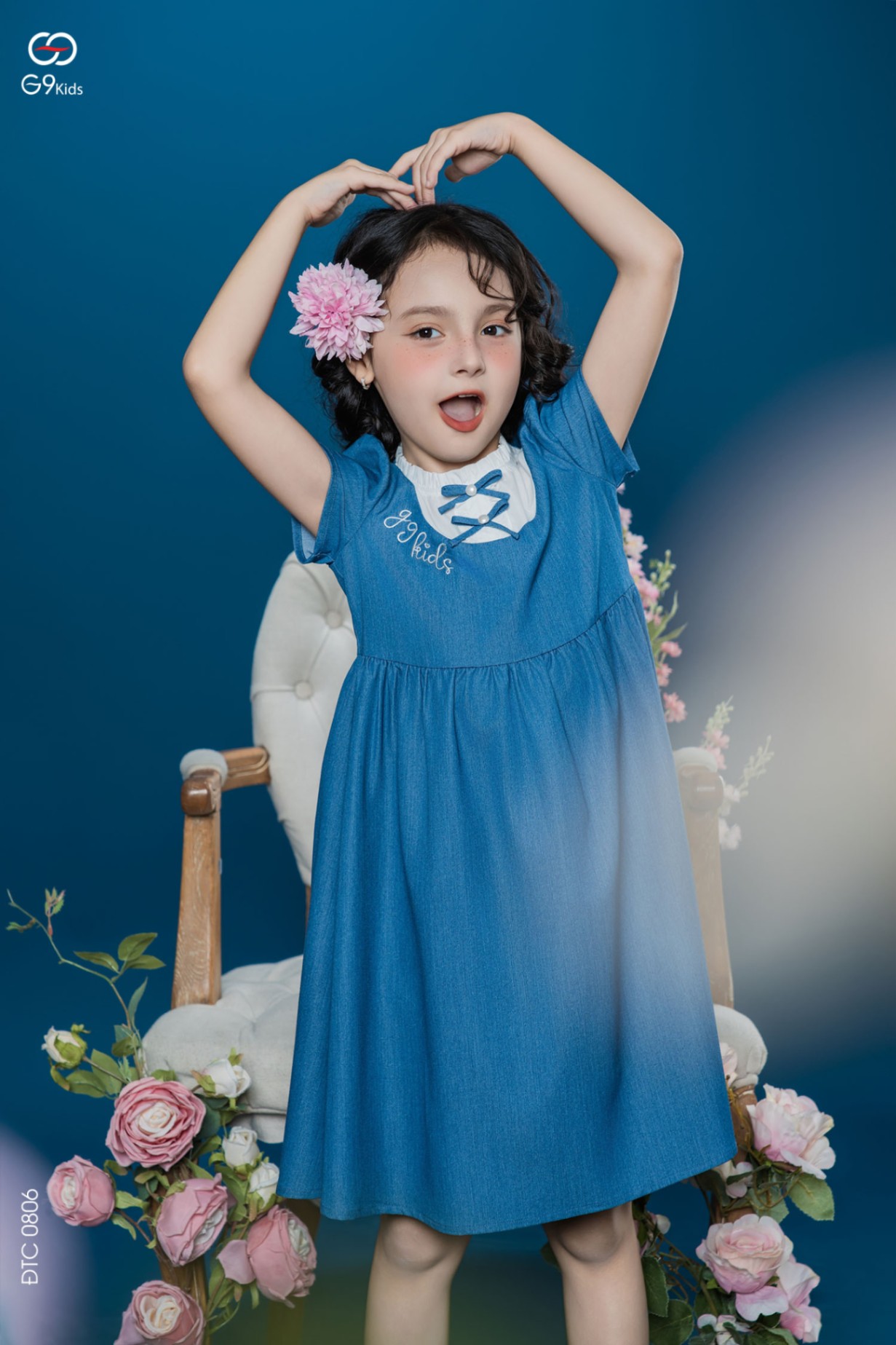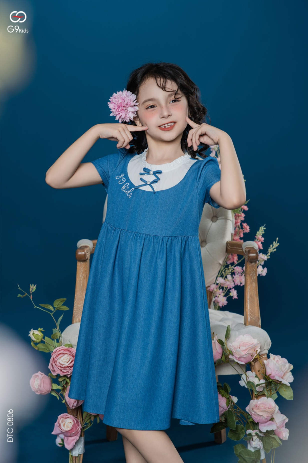 Váy bé gái tay cộc phối nơ chất liệu jeans lụa 25S16BĐTC0806-2