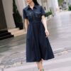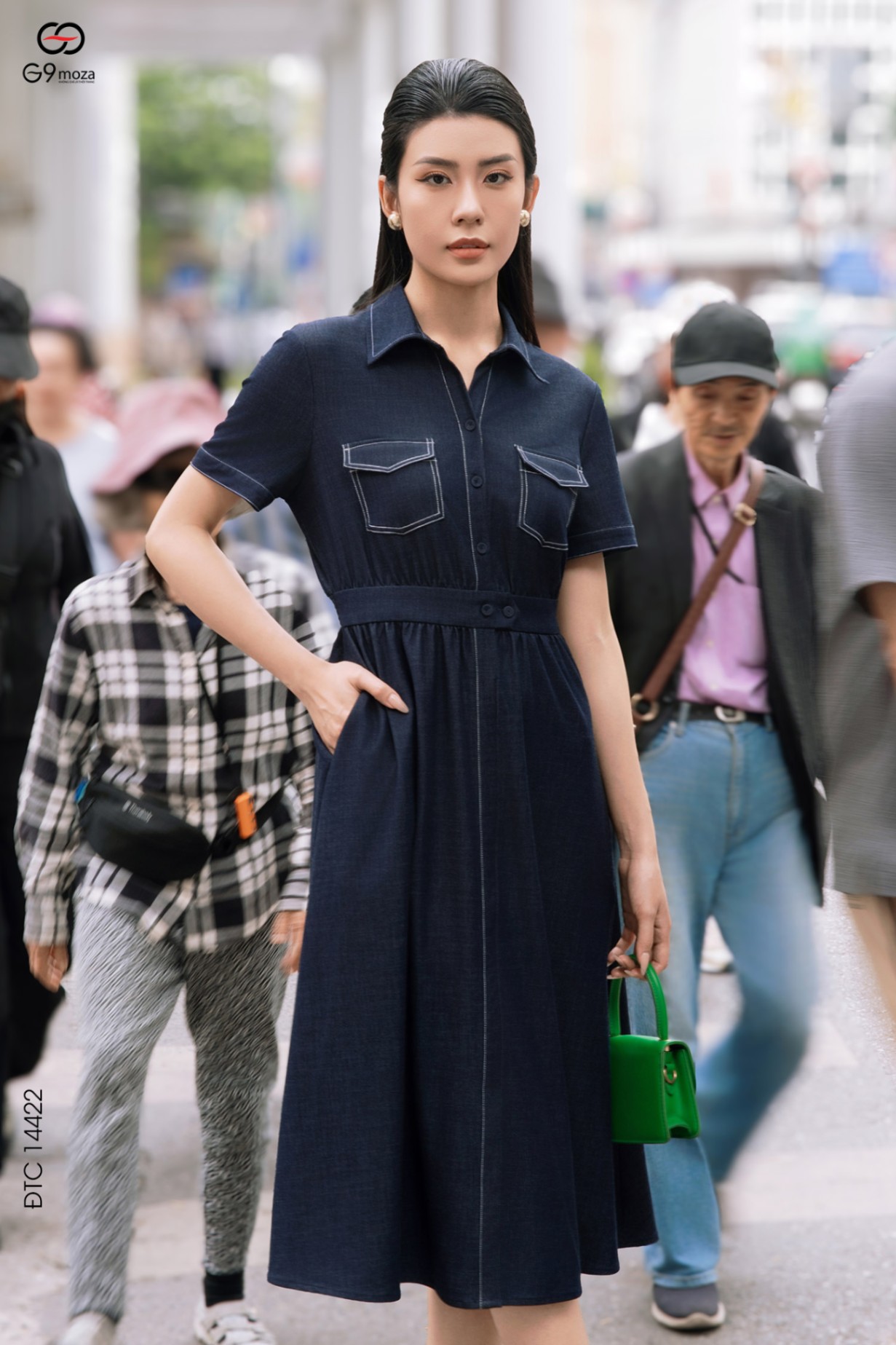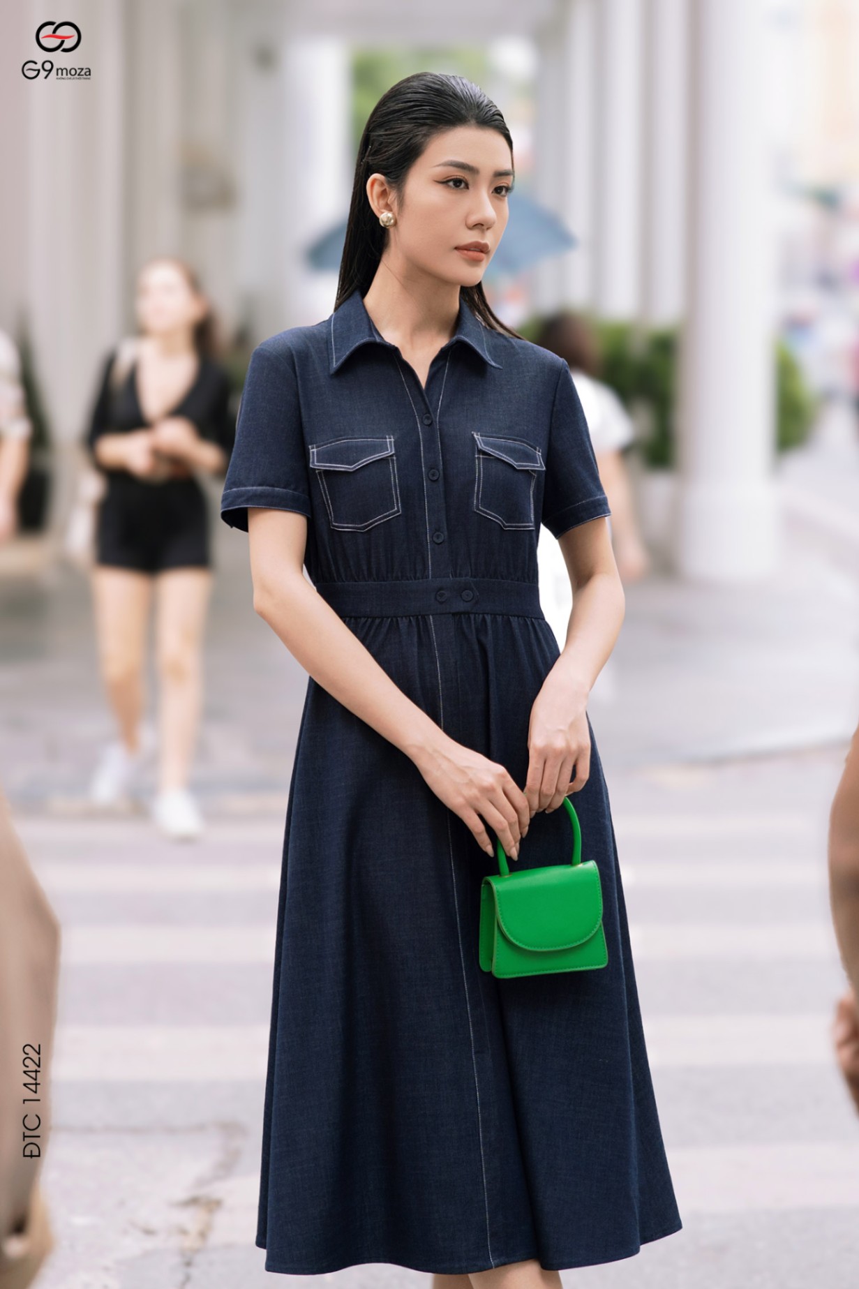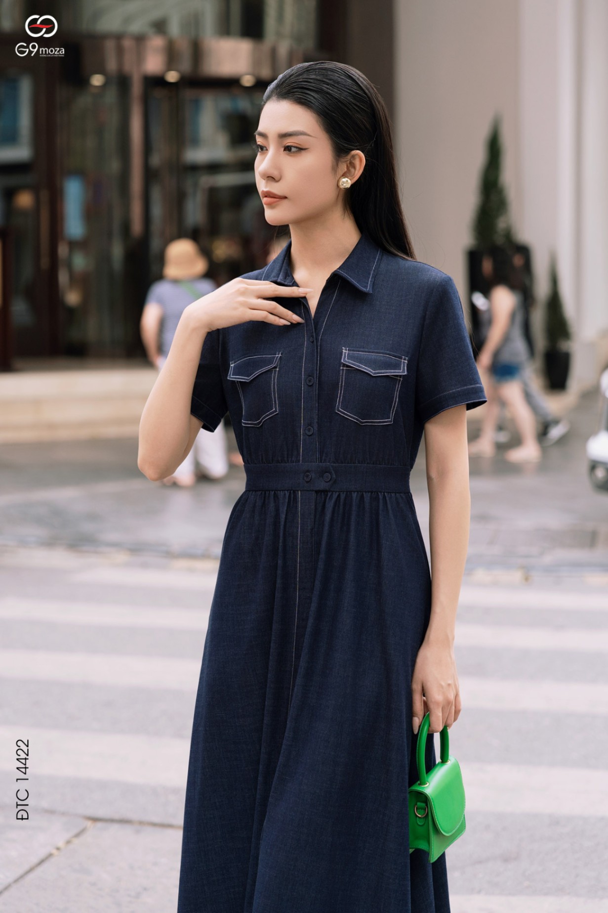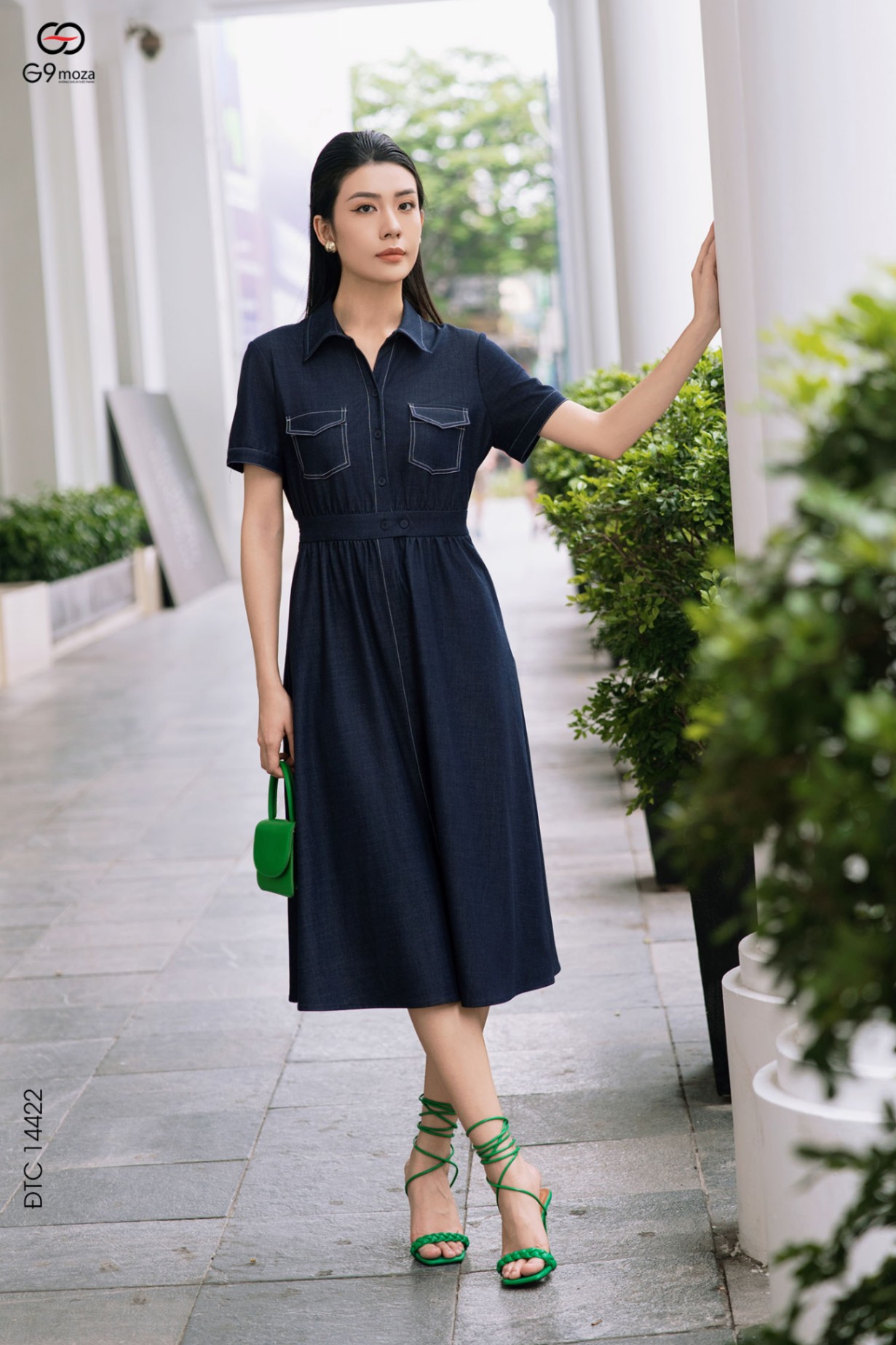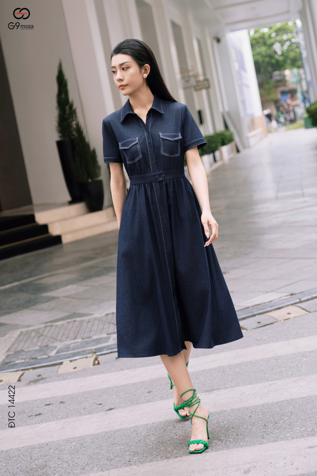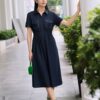 Váy denim dáng xòe cổ sơ mi phối túi 25S52ĐTCX14422-1