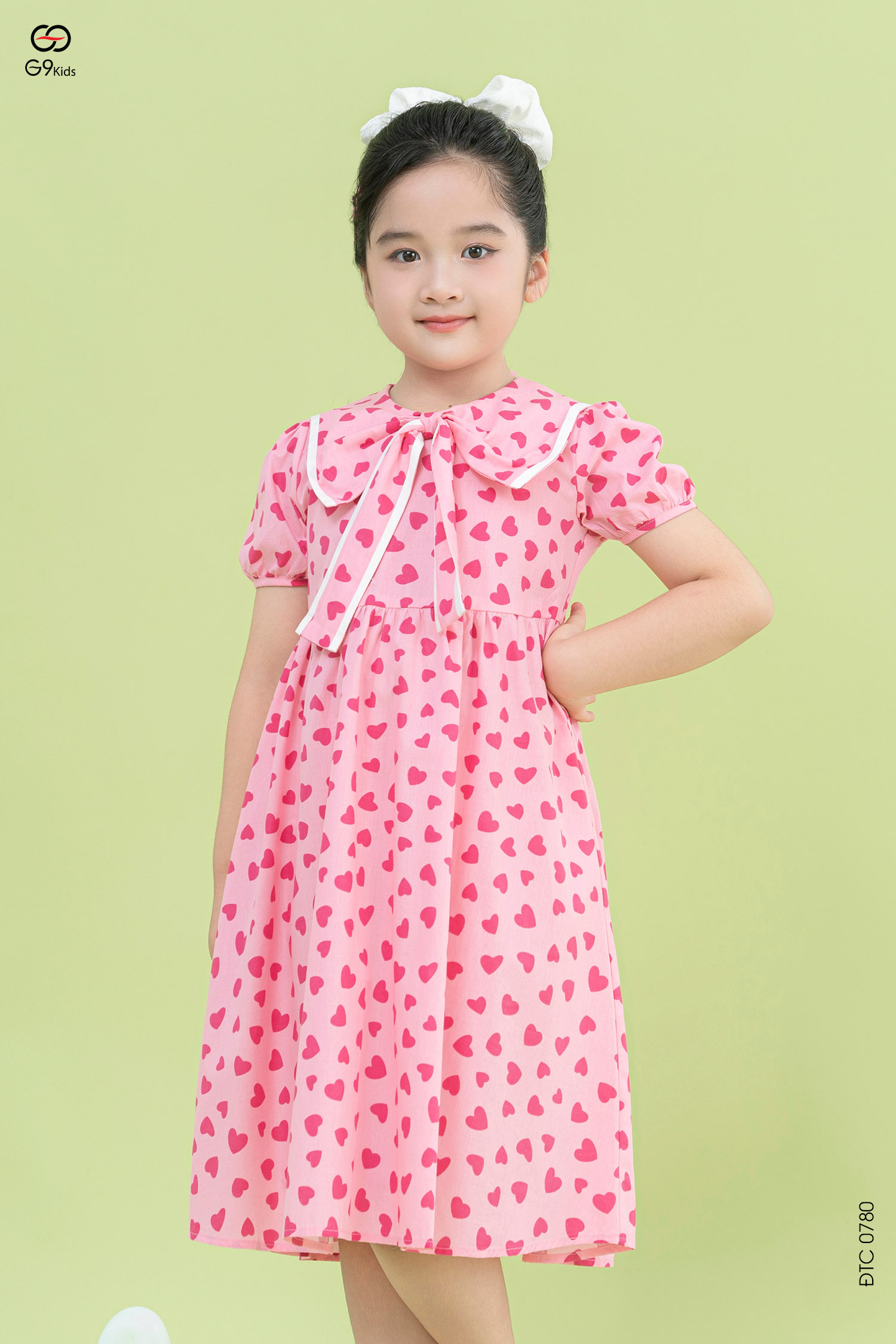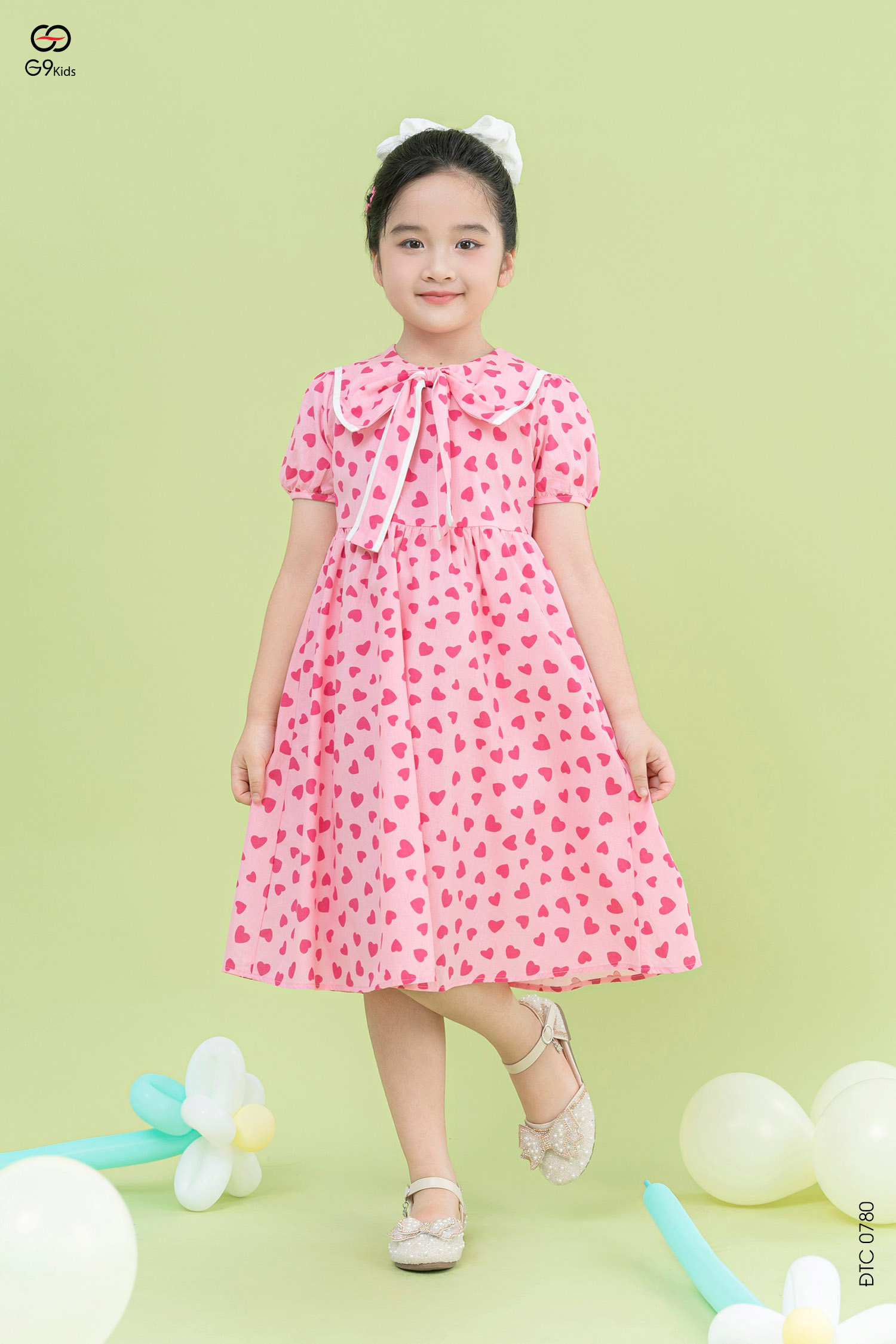 Váy liền tay ngắn cổ phối nơ xinh xắn cho bé gái 25S51BĐTC0780-1