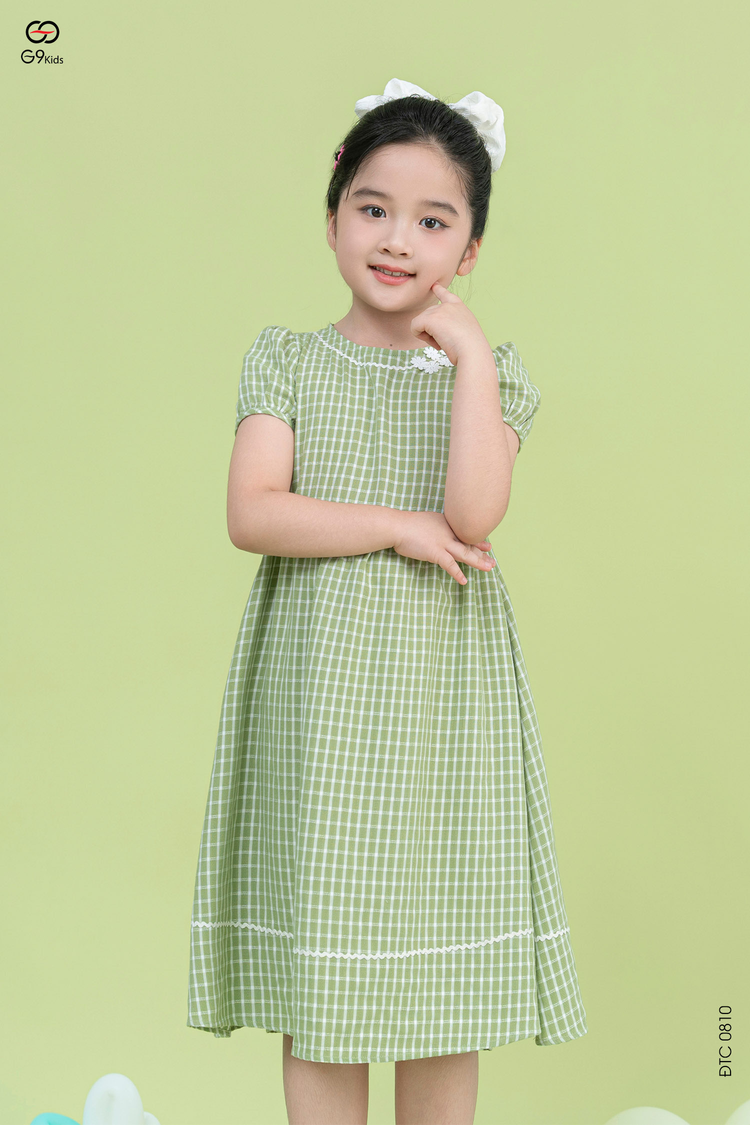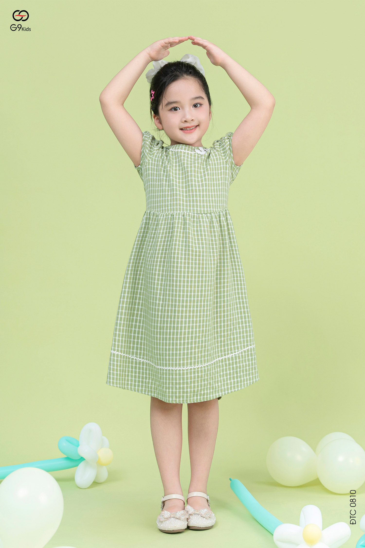 Váy tay cộc cho bé gái chất liệu thô họa tiết kẻ 25S17BĐTC0810-1