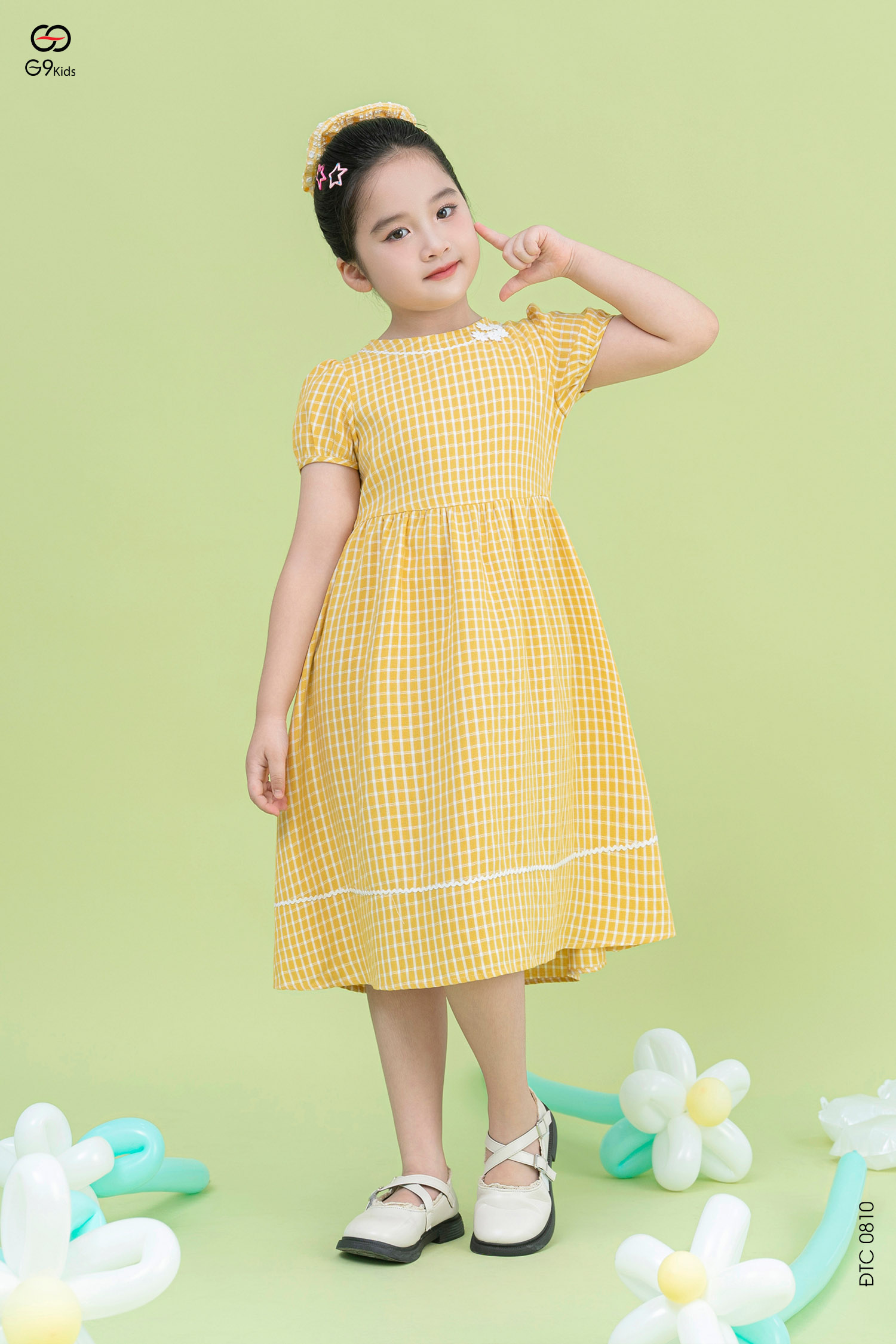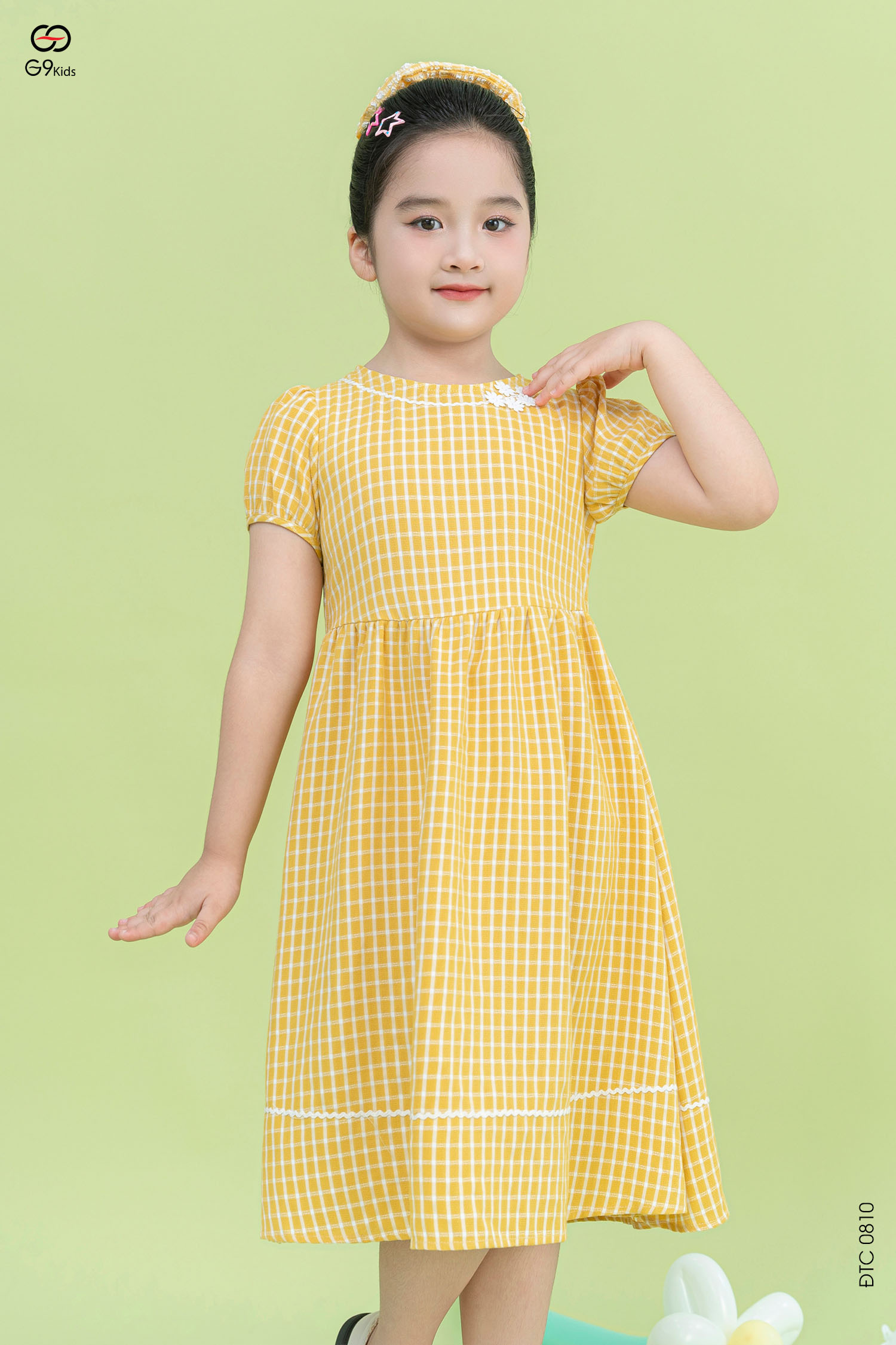 Váy tay cộc cho bé gái chất liệu thô họa tiết kẻ 25S17BĐTC0810-2