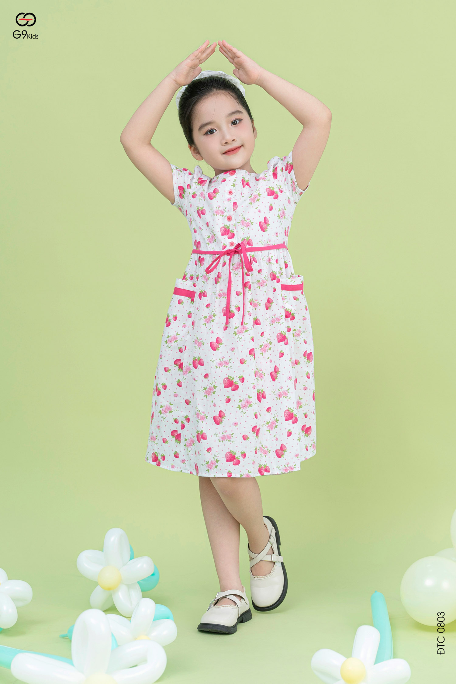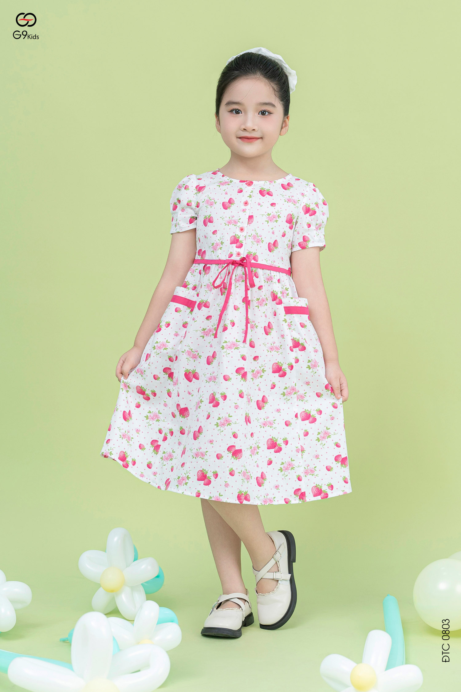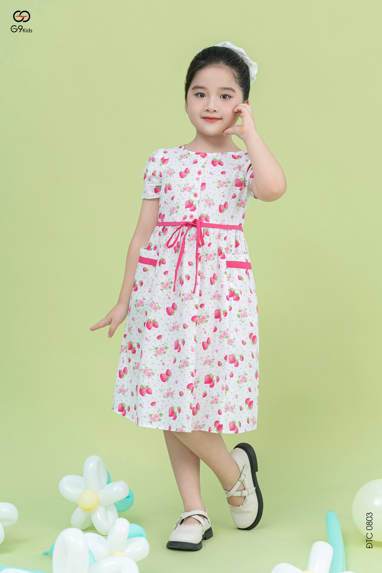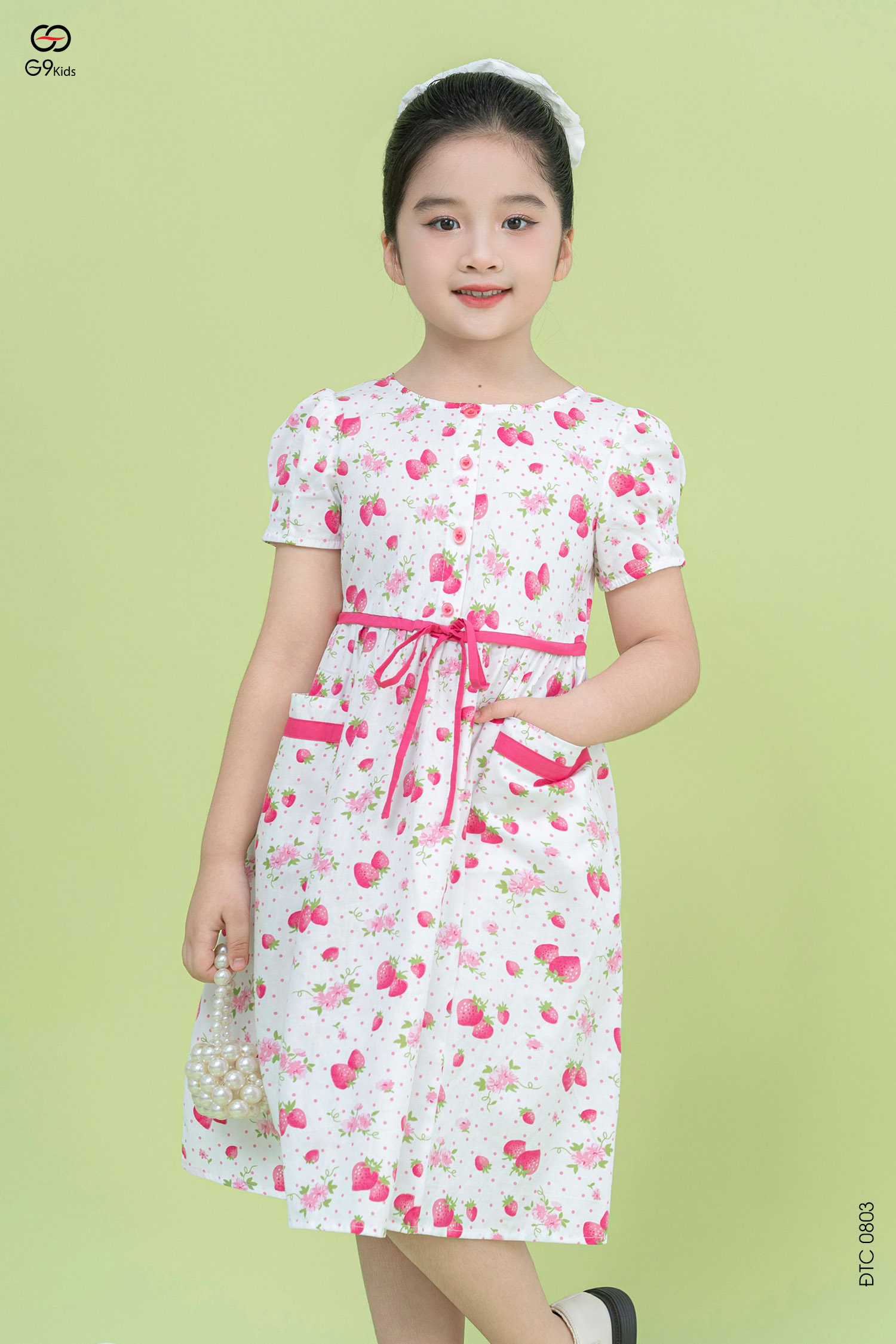 Váy tay cộc cho bé gái họa tiết hoa phối nơ chất liệu thô hàn 25S17BĐTC0803-1
