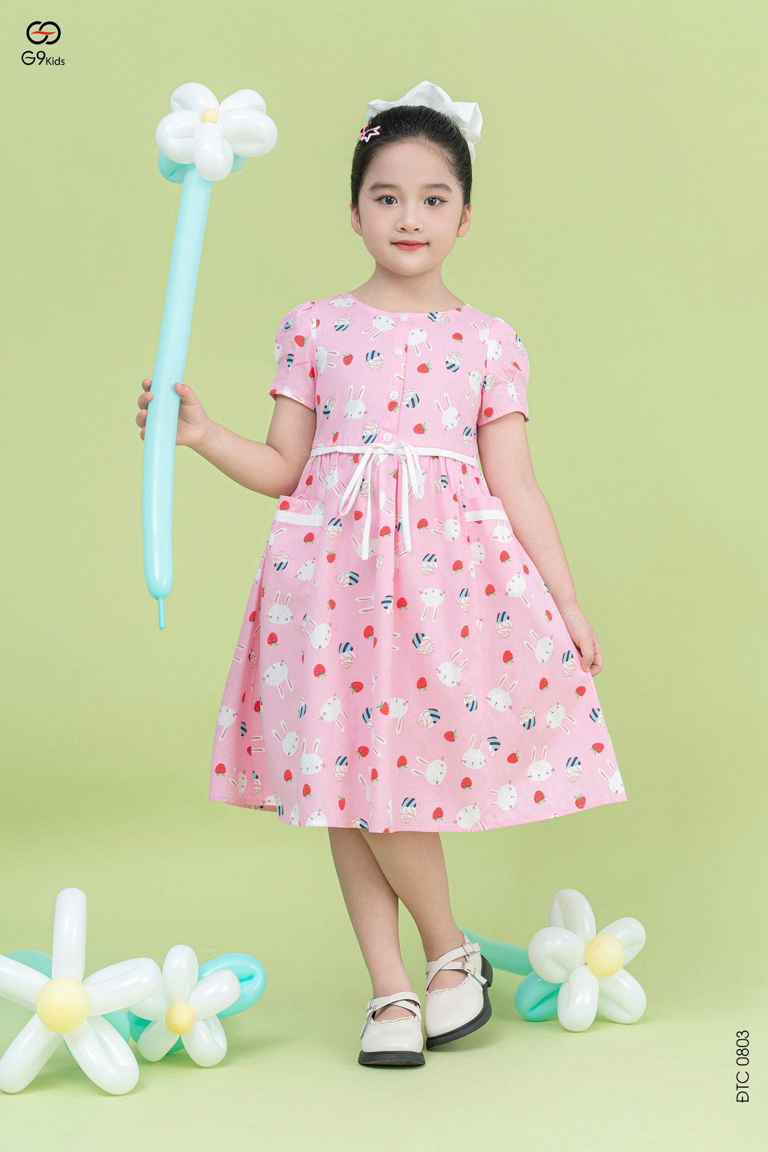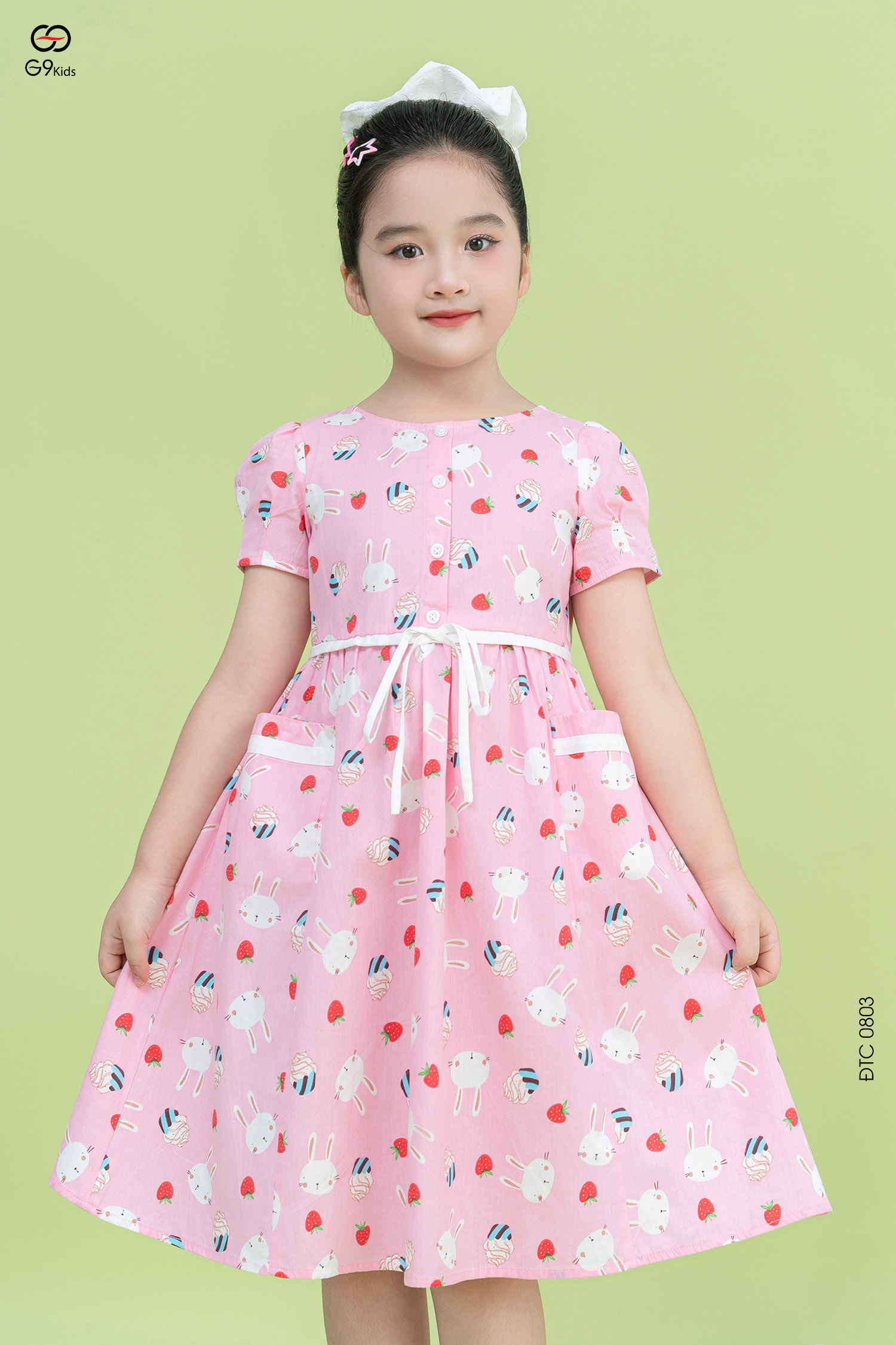 Váy tay cộc cho bé gái họa tiết hoa phối nơ chất liệu thô hàn 25S17BĐTC0803-2