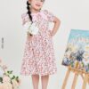 Váy tay cộc dáng xòe phối cổ nơ chất liệu thô họa tiết 24S12BĐTC0696-2