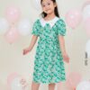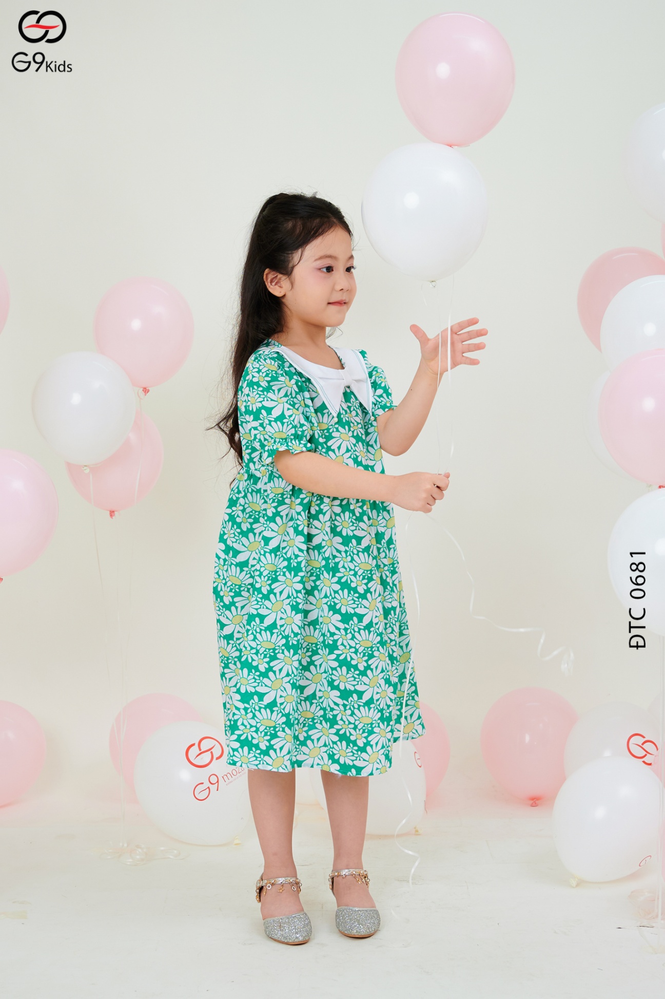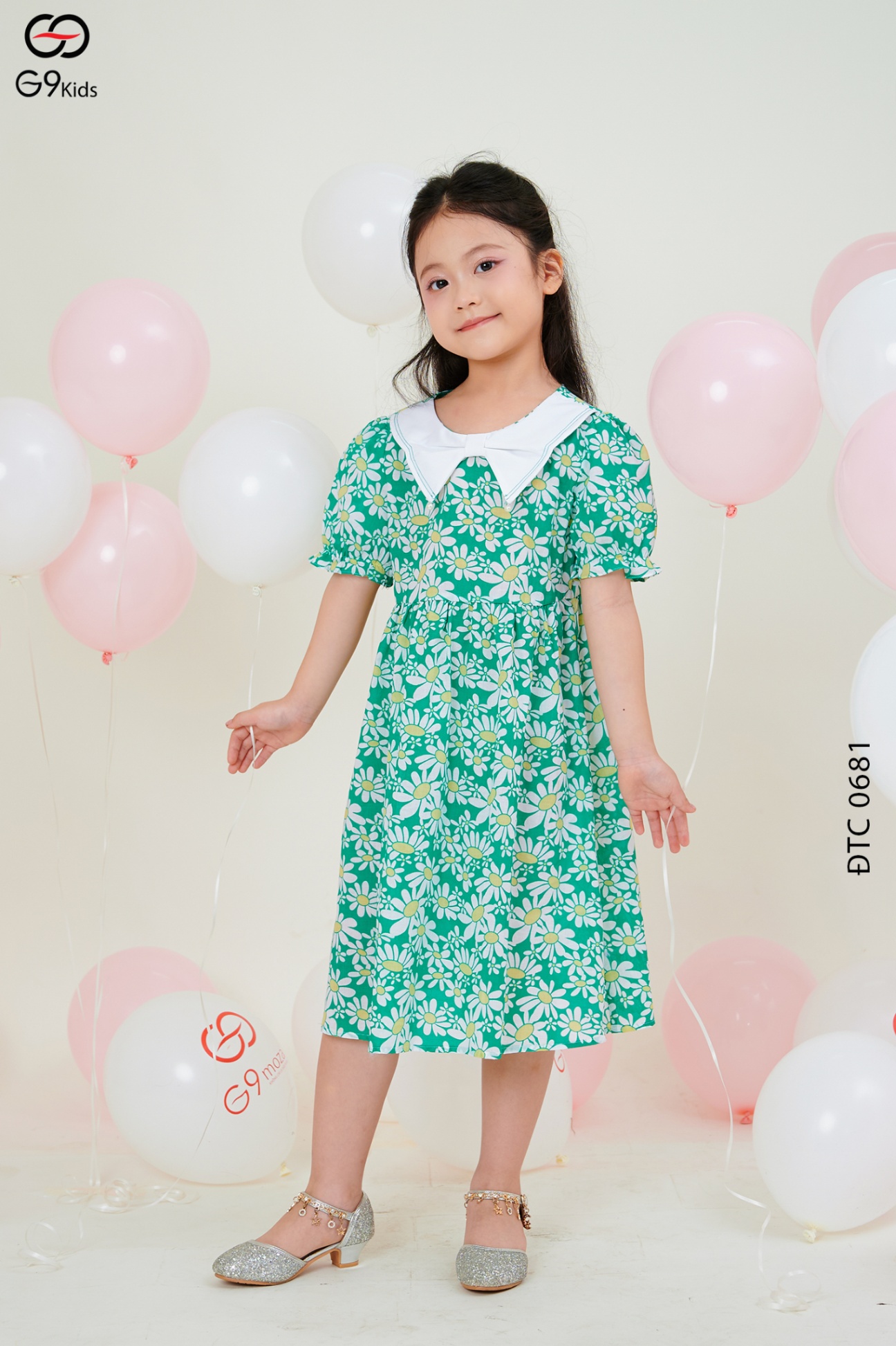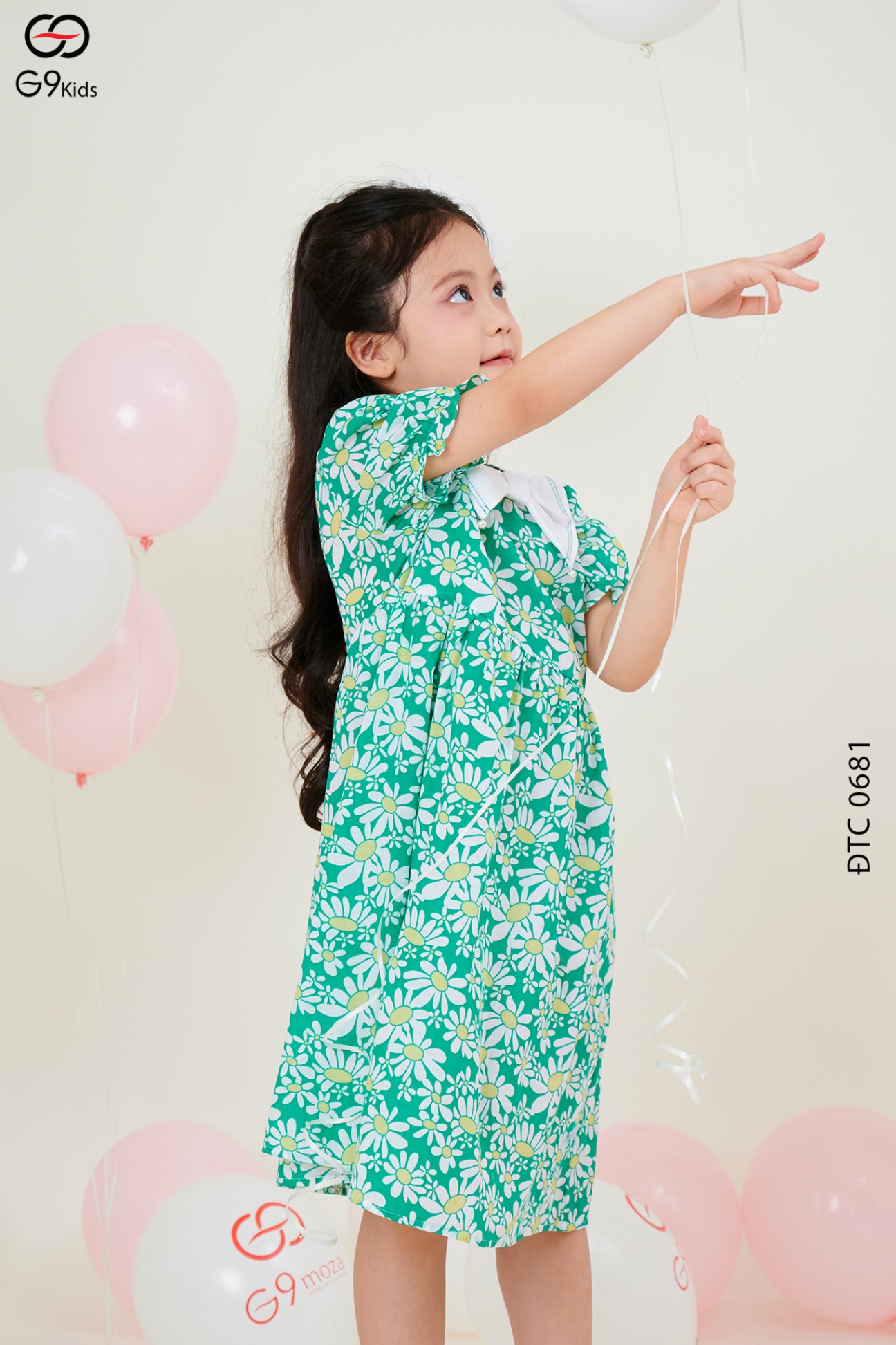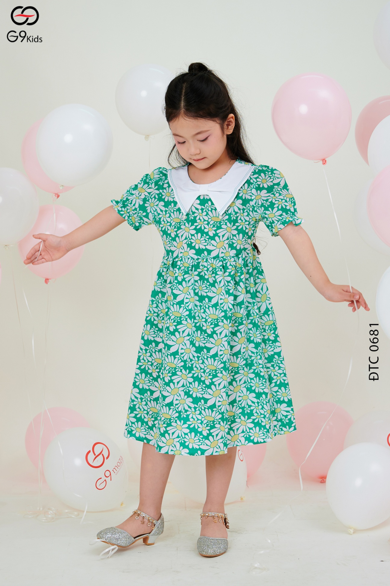 Váy tay ngắn dáng xòe chất liệu thô họa tiết 24S57BĐTC0681-1