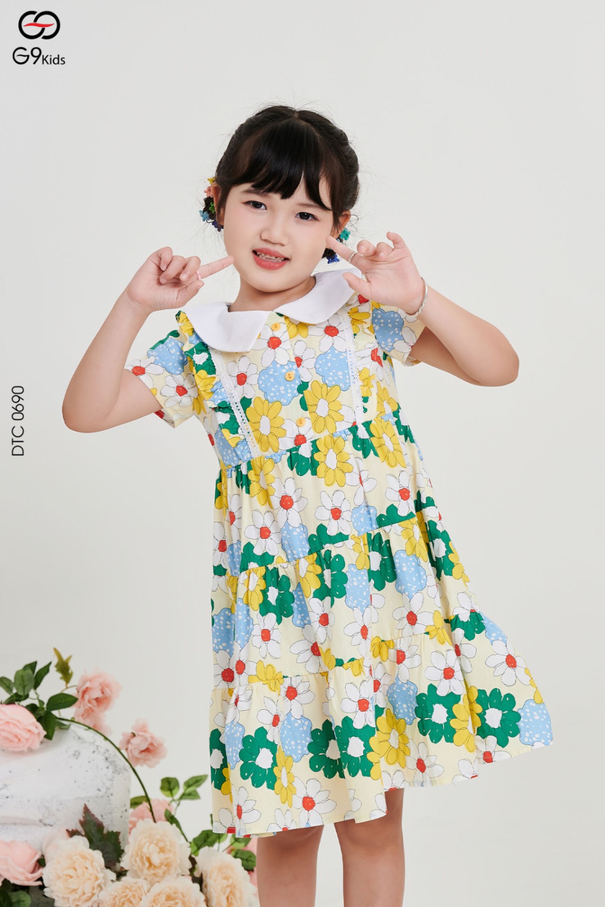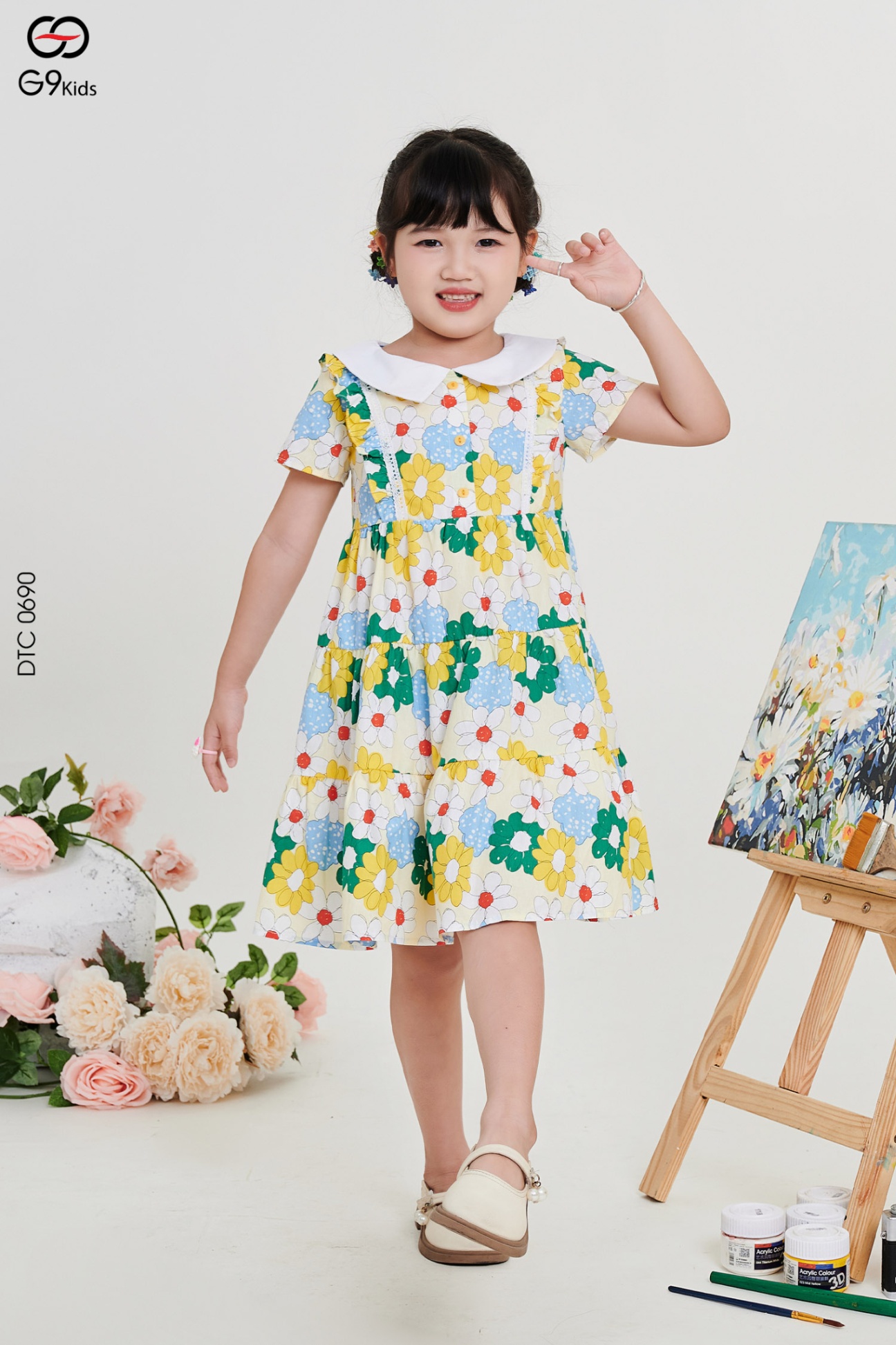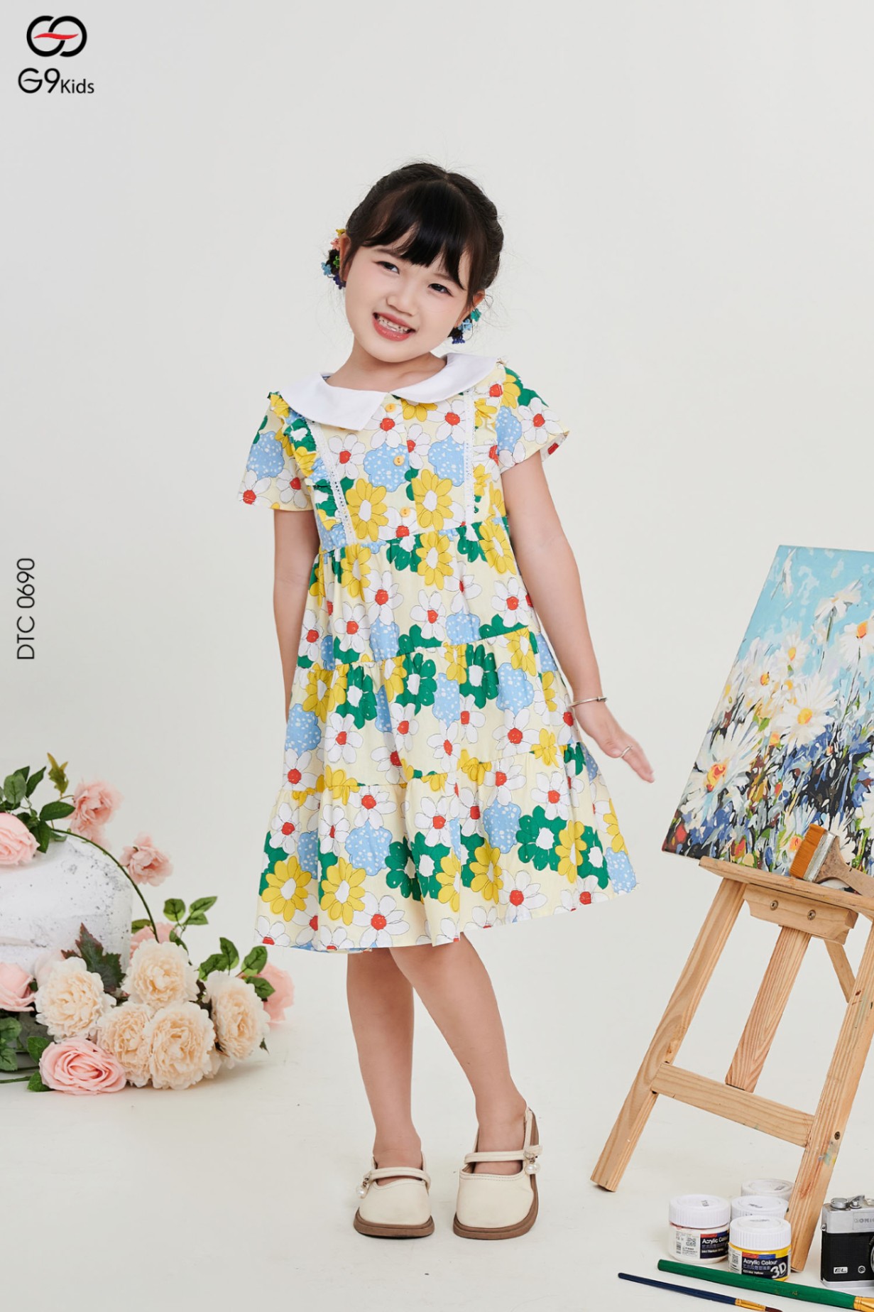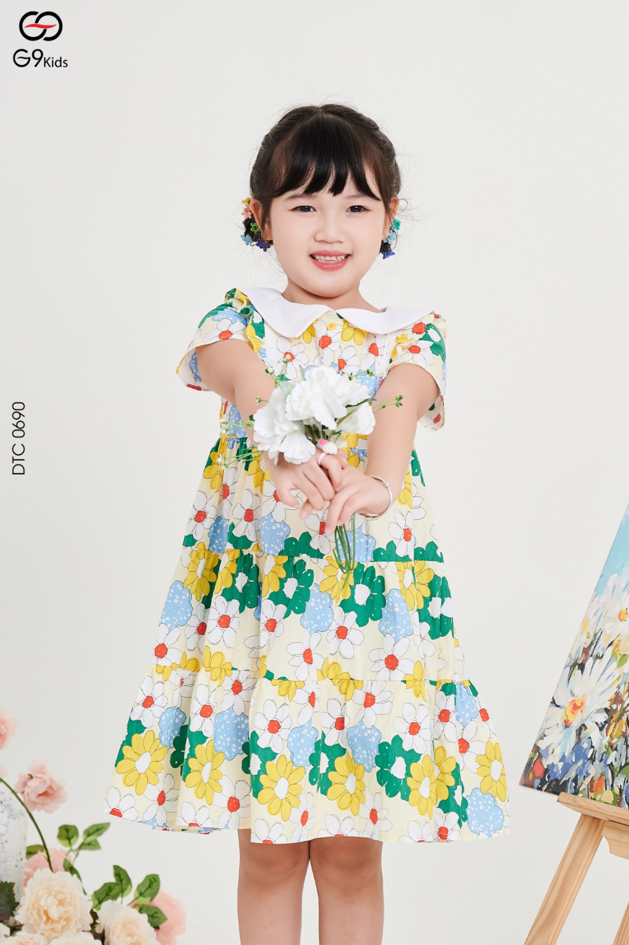 Váy tay ngắn dáng xòe chất liệu thô mềm 24S12BĐTC0690-2