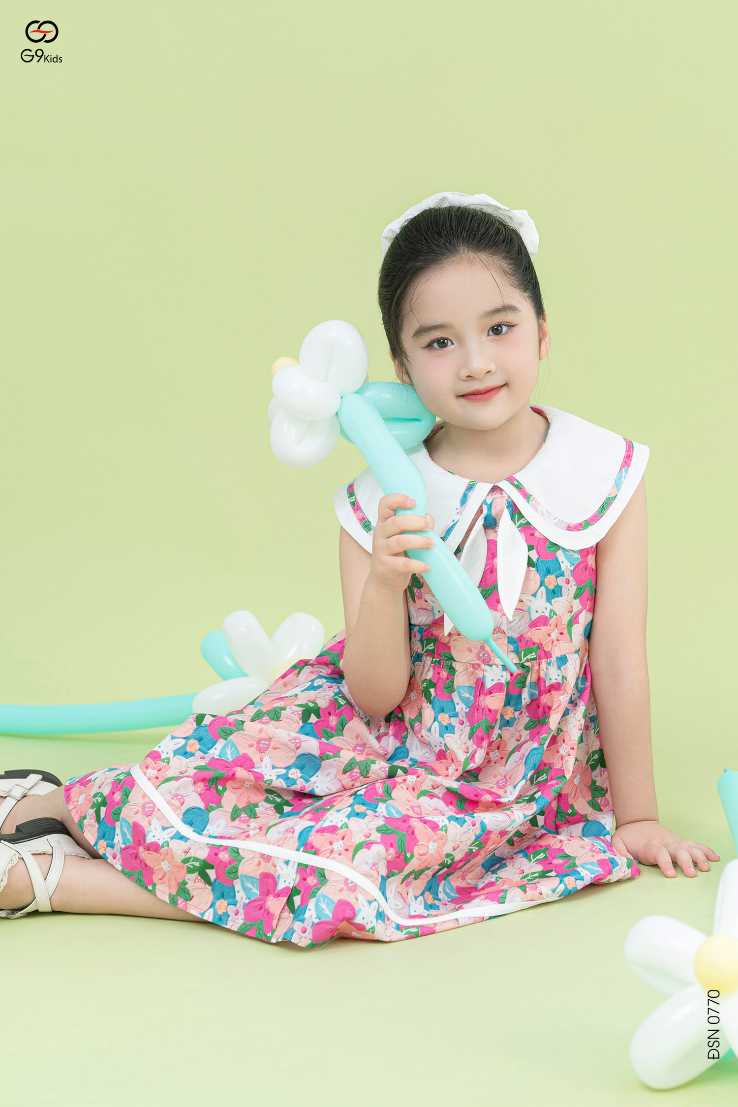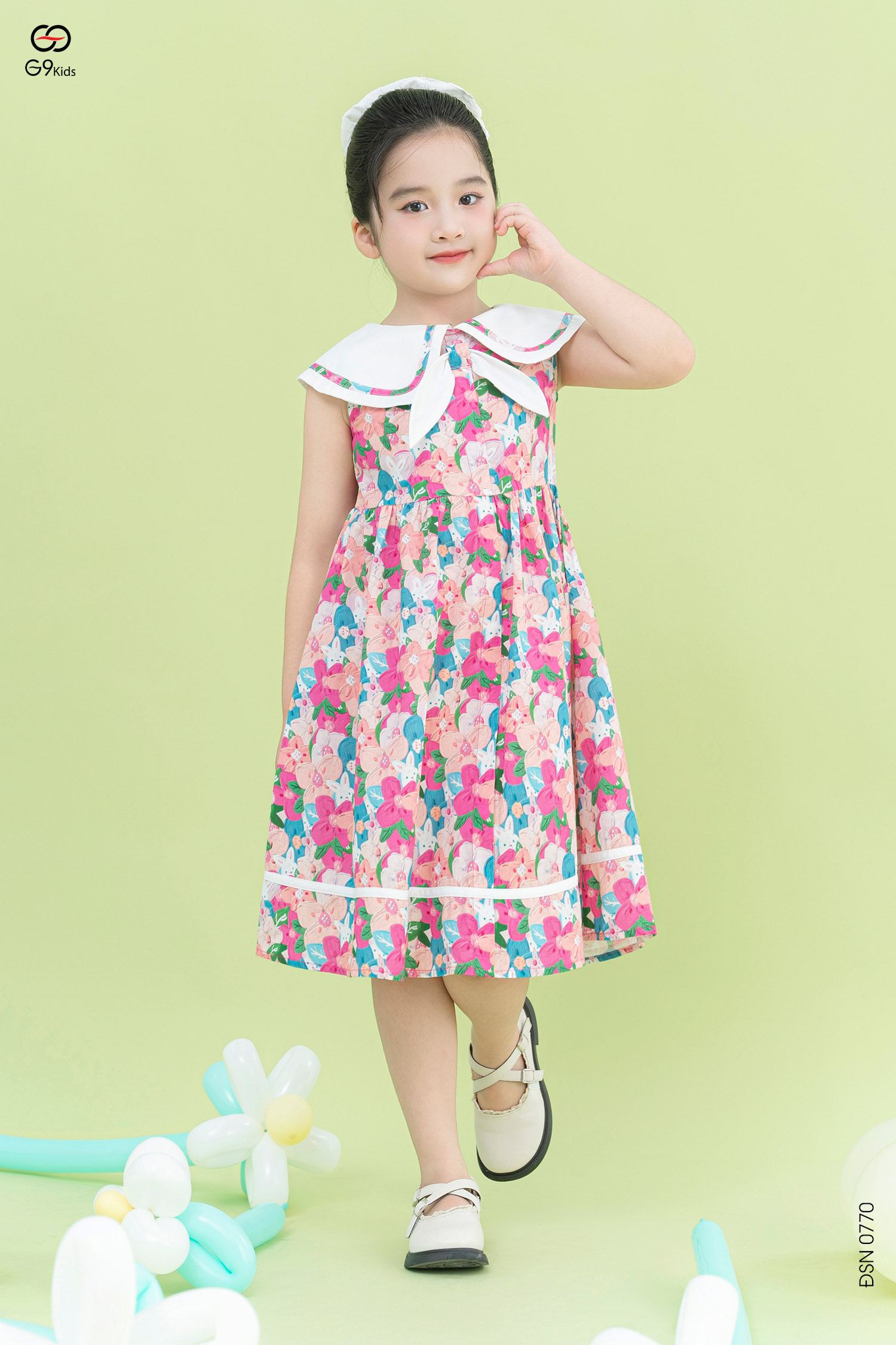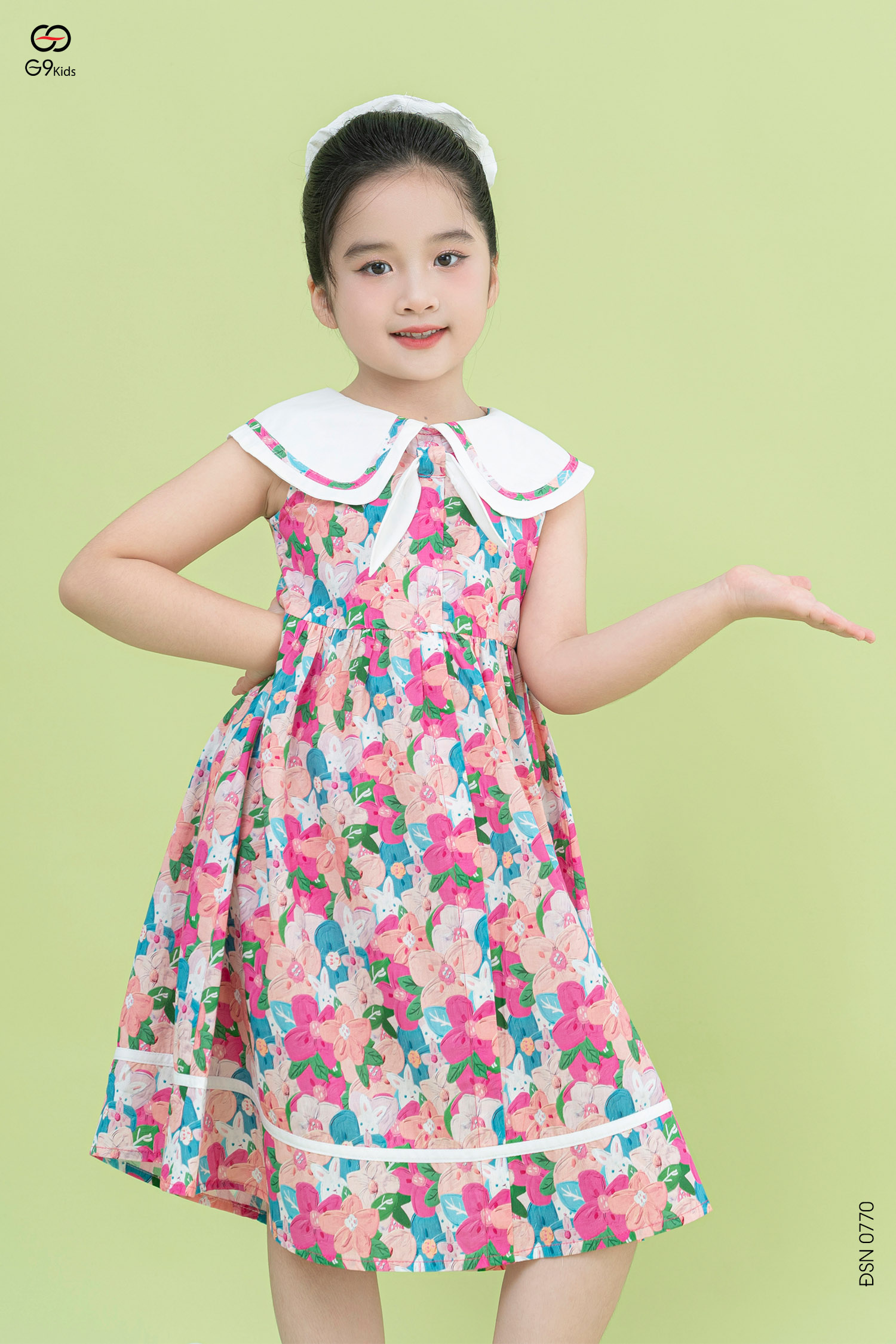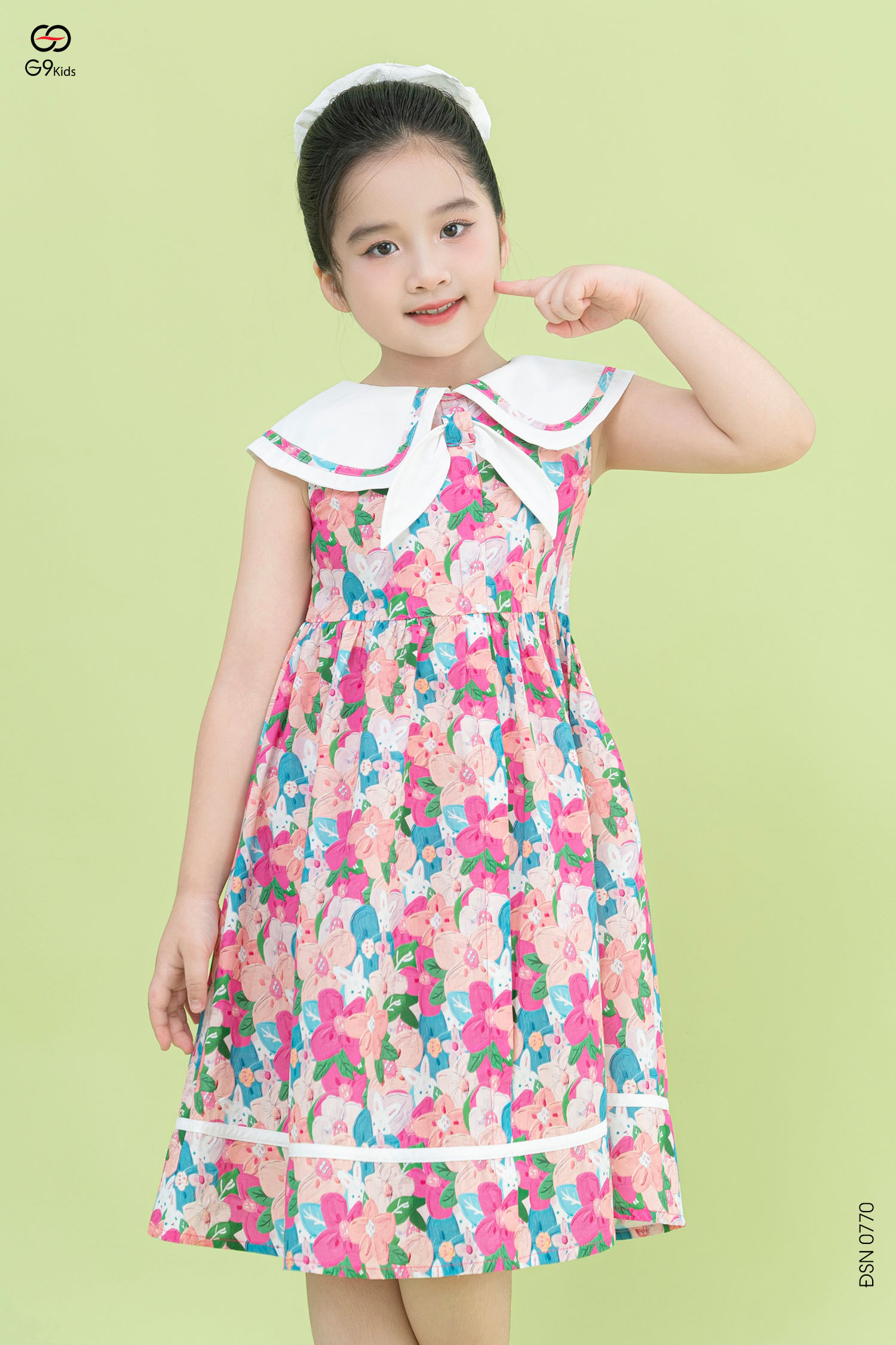 Váy xòe sát nách phối nơ cổ cho bé chất liệu thô hàn 25S11BĐSN0770-2