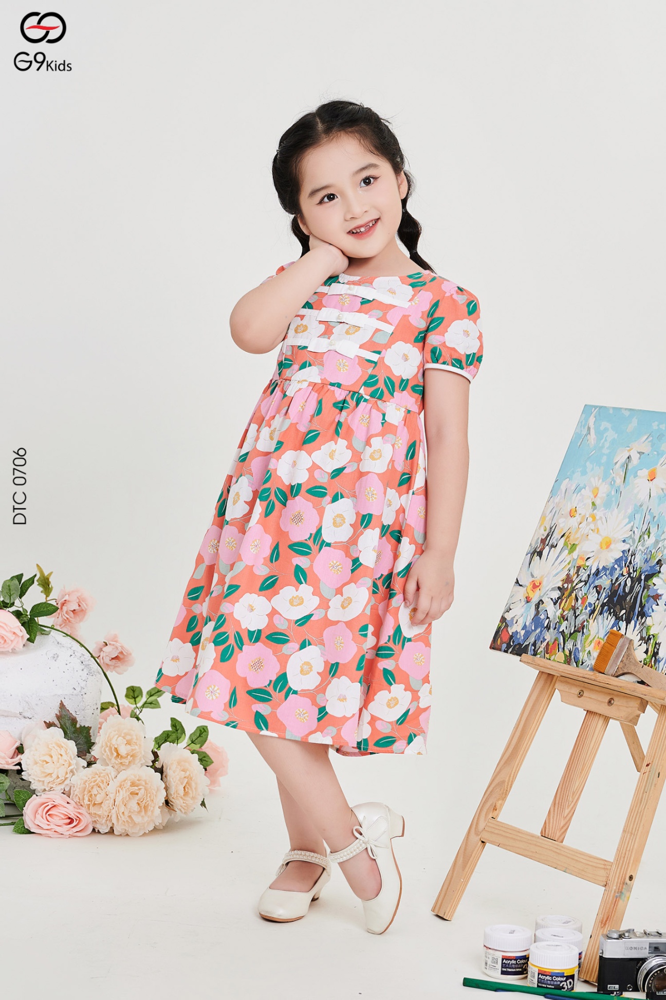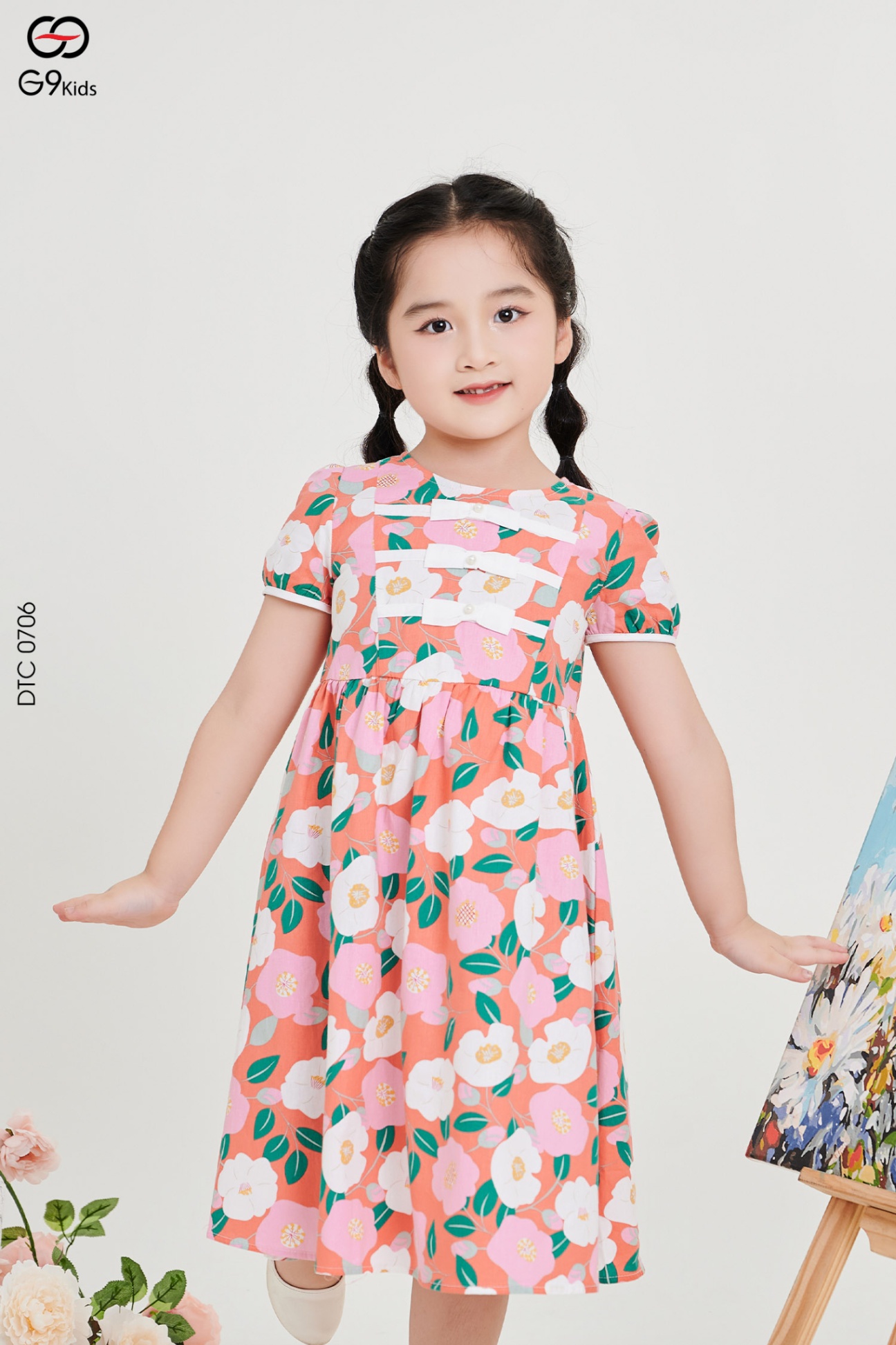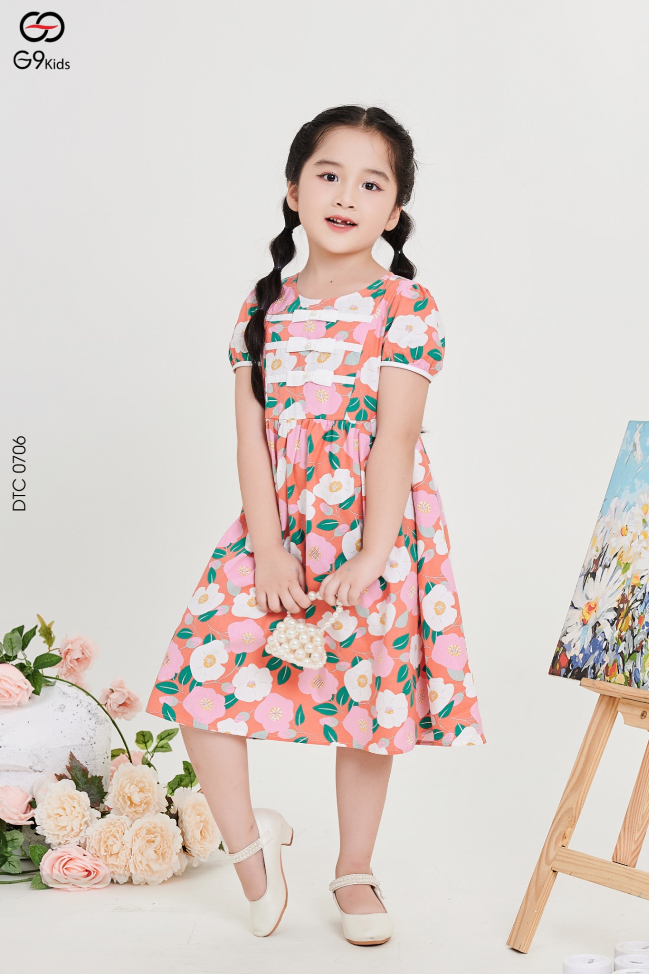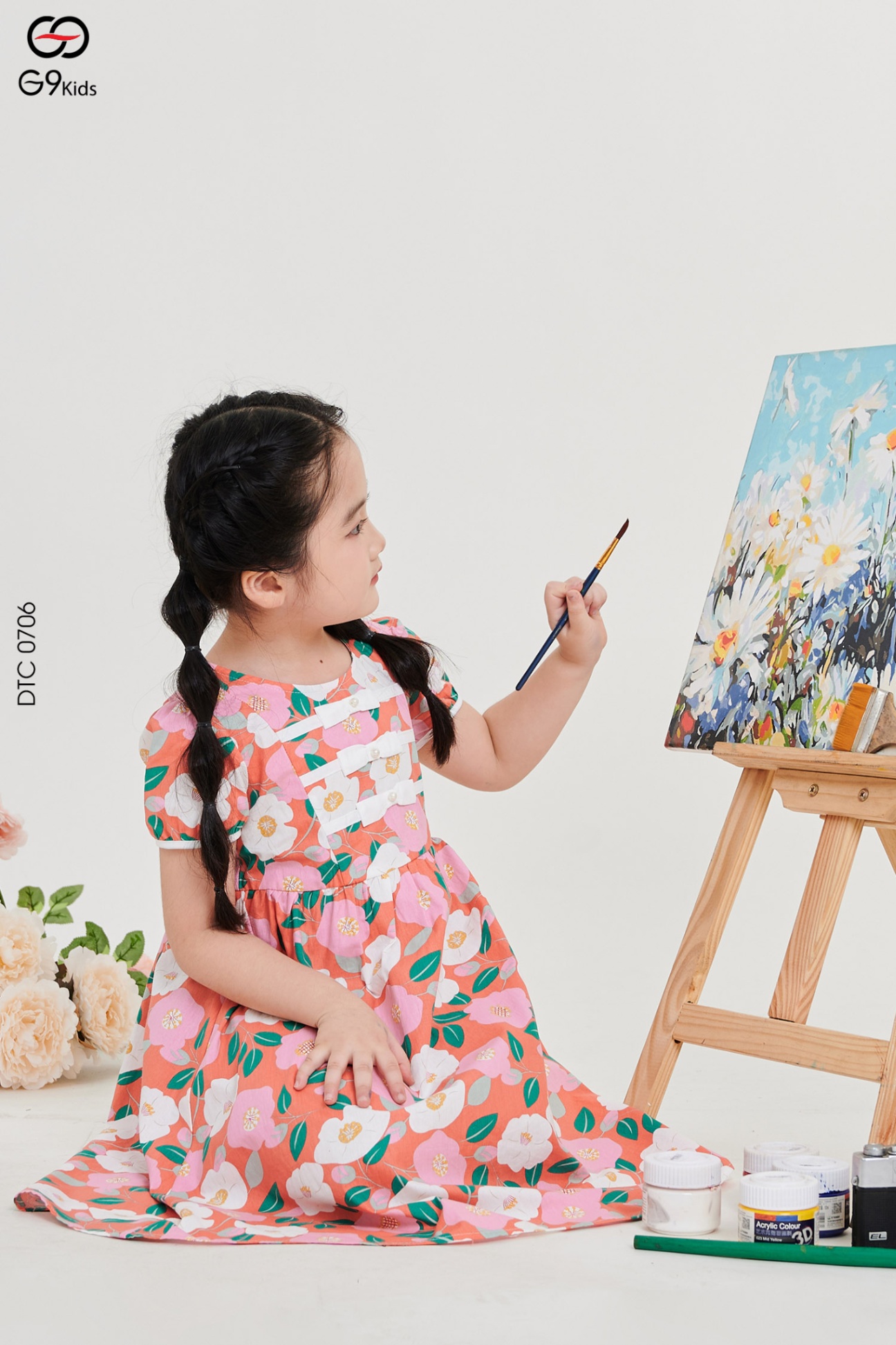 Váy xòe tay ngắn chất liệu thô họa tiết 24S17BĐTC0706-2