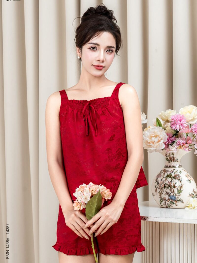 Bộ mặc nhà lụa áo hai dây quần cộc 25S16BMNL14386+14387-1