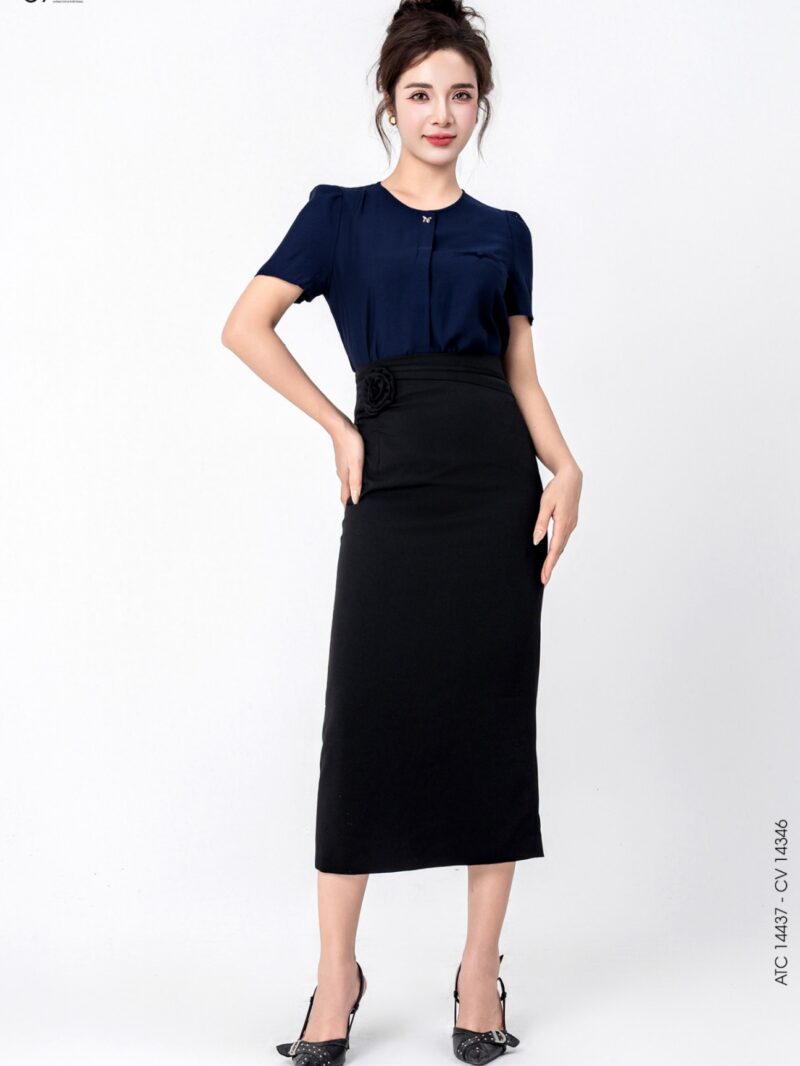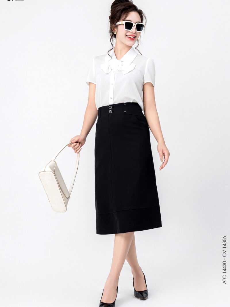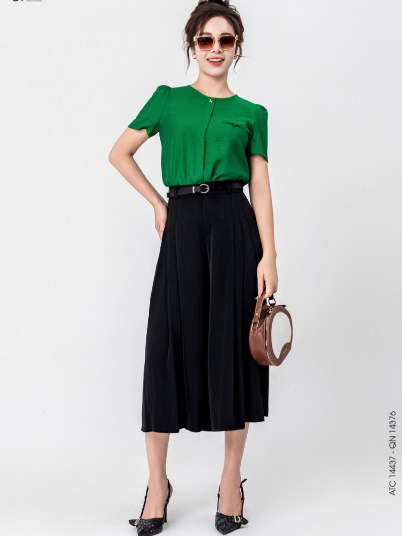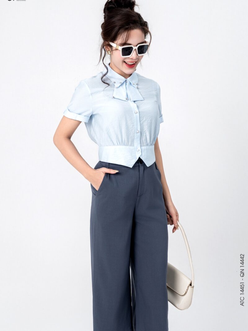Áo tay cộc phối nơ cổ 25S16ATC14460-1